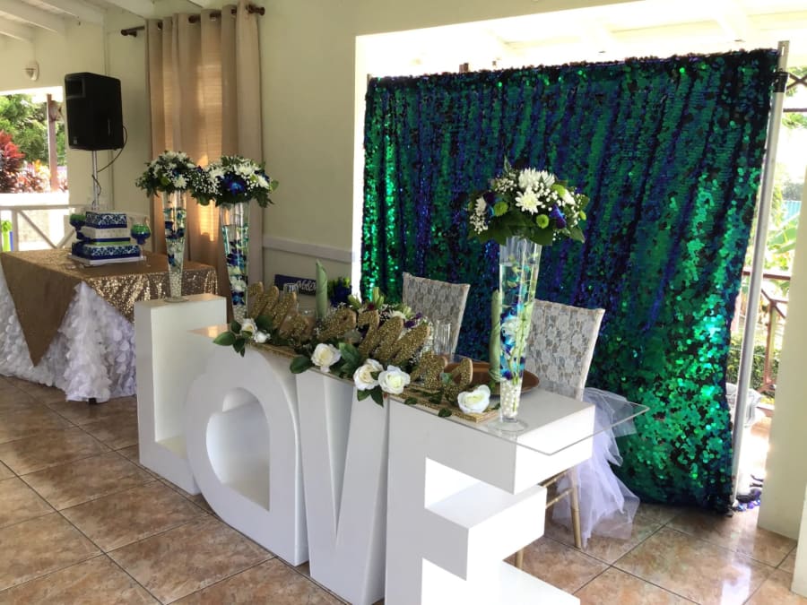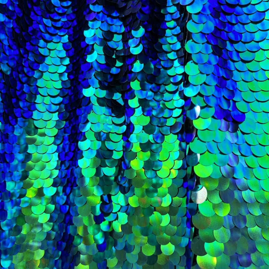 This Sparkling Peacock Backdrop features large shimmery blue green mermaid sequins. It is an excellent choice for parties - weddings, baby showers, birthday parties, disco themes and occasions of any kind.