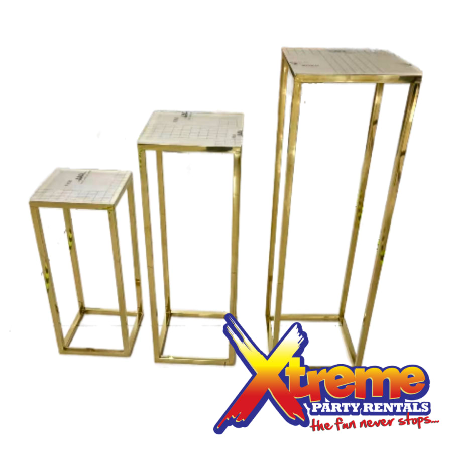 Our Squared Mirror Gold Frame Plinths come in three versatile sizes to accommodate a variety of display needs: