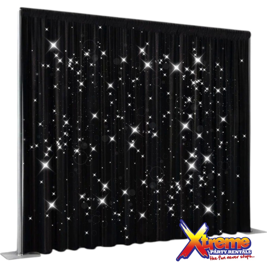 Enhance your event with our comprehensive backdrops, tables, chairs bouncers, photobooths, and more in Barbados. Our 12ft Starlight Drape is available for delivery across Barbados, providing convenience and exceptional service for your special occasions.