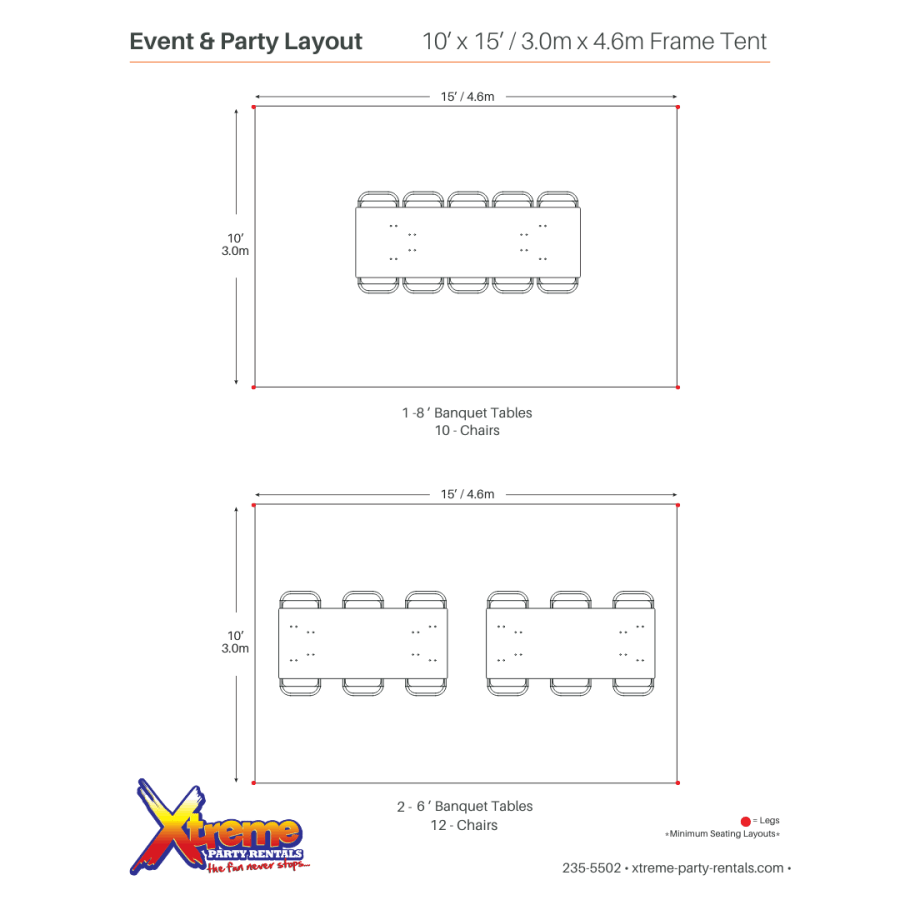 The 10ft x 15ft Frame Tent is an exceptional choice for intimate gatherings or as an extension to larger setups. With an eave height of 8 feet and a peak height of 10’6”, guests can mingle comfortably beneath its generous canopy. From weddings to family reunions, and community events to corporate meetings, this tent adapts effortlessly to your needs. 🥂