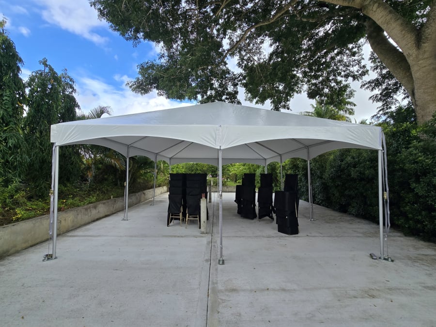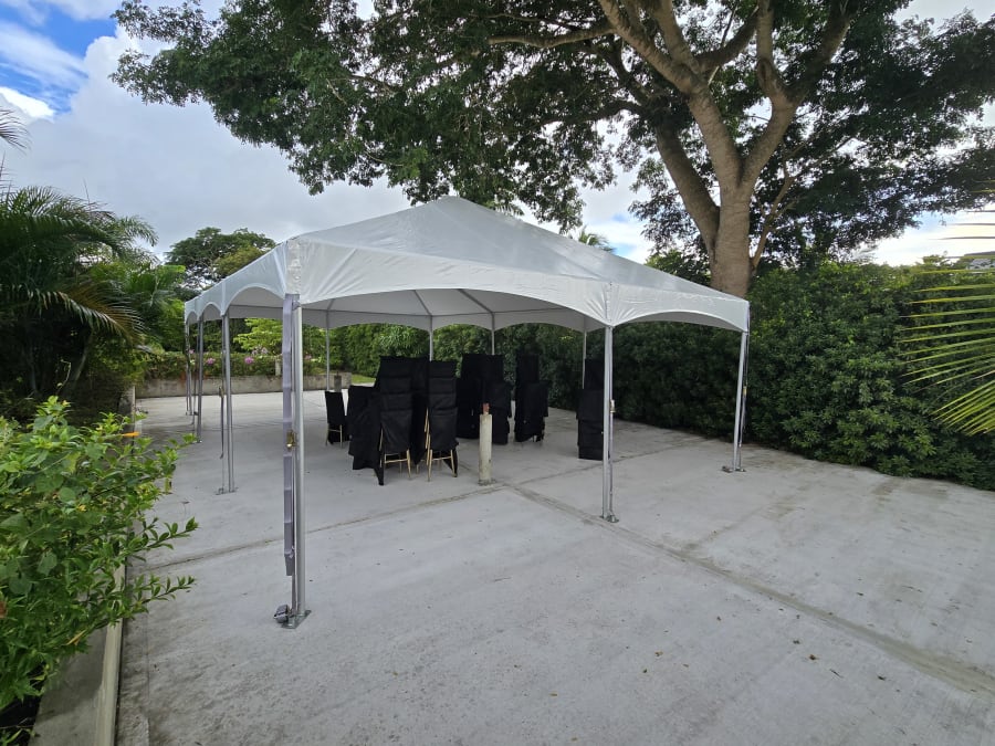 Make your next event unforgettable with our 20ft x 30ft Frame Tent—the ultimate solution for hosting all occasions in Barbados! Designed to impress, this high-quality tent offers the sophisticated appearance of a high peak tent, minus the peak, and features a tensioned valance for a modern, seamless look. Whether you're planning a wedding, corporate event, birthday celebration, or family gathering, this tent provides both style and adaptability to suit your needs.