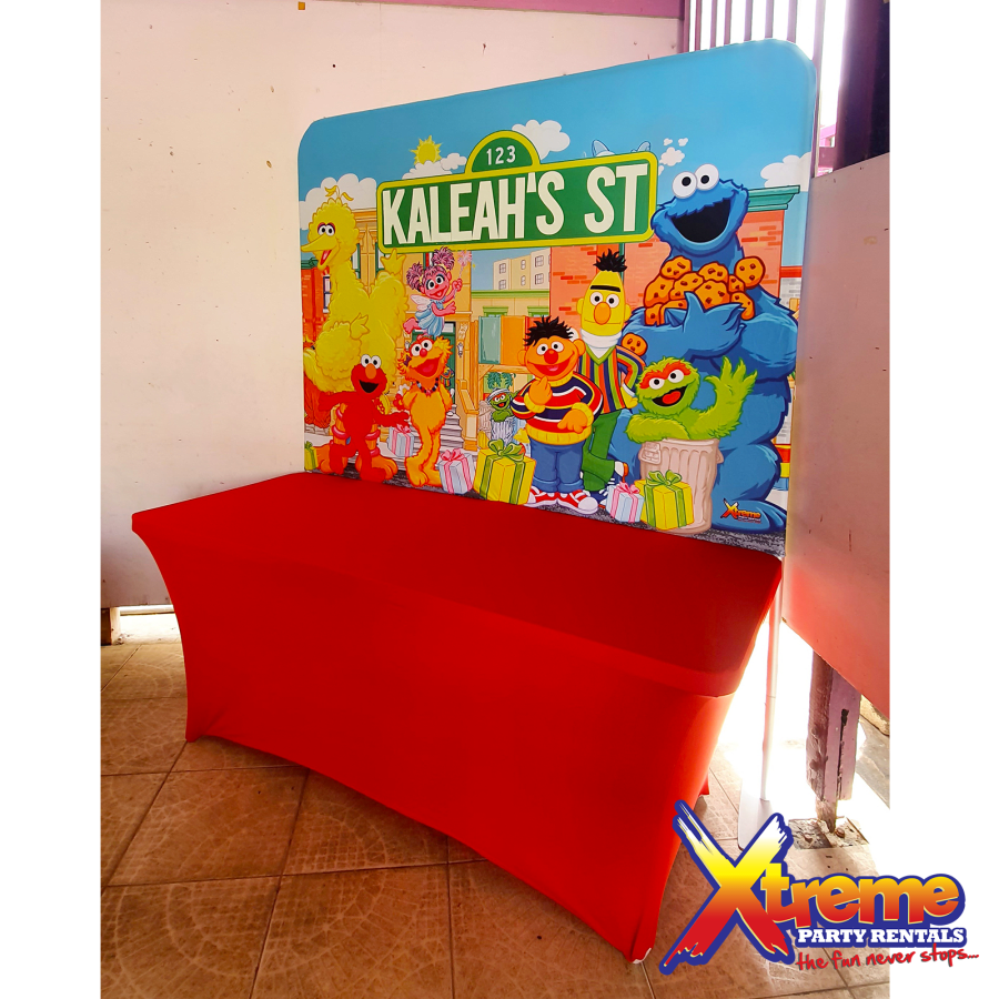 These backdrops are the perfect addition to your theme party. Pair it with your dessert table display or use it as a standalone display for your picture taking opportunities. Our 6ft framed backdrops were uniquely designed to cater to small spaces and be paired with a 6ft table, columns or a decorative balloon wall. The frame is approximately the width of the 6ft table and stands 7ft tall. However, unlike the 8ft full floor length backdrop, this stands legs are 76cm, so the entire backdrop image (4.5ft x 6ft) can be viewed above the table.
