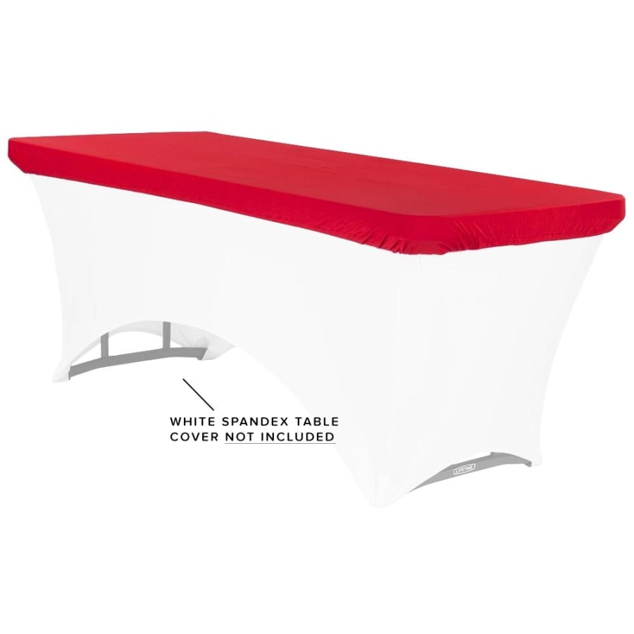 Upgrade your 6ft rectangular tables with our Spandex Table Topper/Caps! Effortlessly add additional color to your tables by slipping one of our Spandex Table Caps over the tabletop. Each table cap features a durable stretch band on the inside to accommodate 6ft rectangular tabletops. Not only are these table caps a great way to incorporate more of your decor colours, but they're also a perfect way to protect your tabletop from spills or stains.