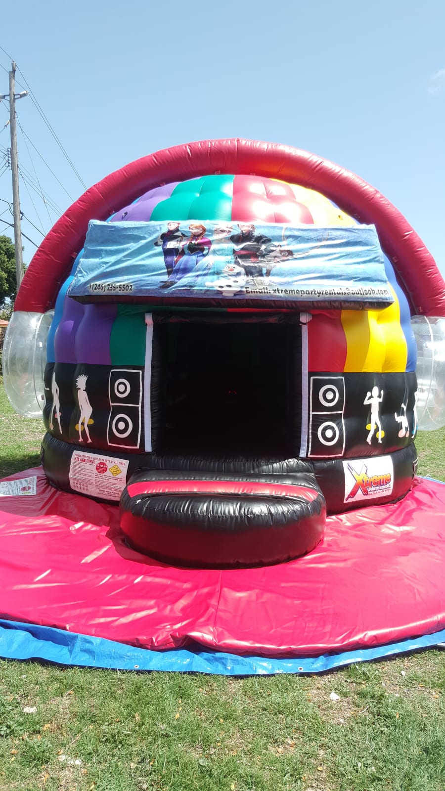 Not your average jumping tent the Xtreme Mini Party Pod features a luminated headphone design. It's small footprint makes it the ideal size for any backyard party. Like all our Disco Domes this bounce house comes complete with lights and music. GREAT in the day and even better at night. No matter the age or theme children of all ages love that they can jump, sing and dance all day long even when the sun goes down.
