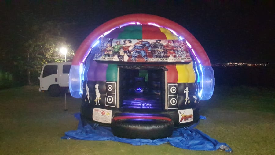 Not your average jumping tent the Xtreme Mini Party Pod features a luminated headphone design. It's small footprint makes it the ideal size for any backyard party. Like all our Disco Domes this bounce house comes complete with lights and music. GREAT in the day and even better at night. No matter the age or theme children of all ages love that they can jump, sing and dance all day long even when the sun goes down.