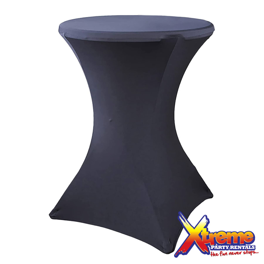 These 32 inches diameter x 43 inches table height cocktail spandex fitted tablecloth are for round cocktail table with 4 legs base. Our High folding cocktail table covers are suitable for events such as weddings, birthdays, showers, dinner rehearsals, corporate parties and simple family functions and whenever there is a requirement for functional, practical tables that are easy to use and to transport.