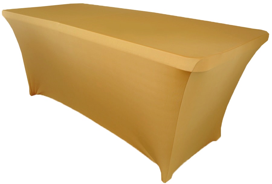 Whether you're planning a birthday party, a wedding reception, or a corporate event, our 6ft spandex table cover in gold is a must-have accessory. It adds a touch of sophistication to any table setting and creates a visually appealing focal point for your guests. Make a statement with our stylish and versatile table cover.