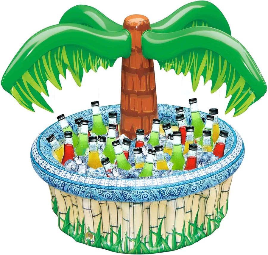Great cooler to chill your beverages for summer parties, birthday parties, luau themed parties pool parties and for family fun. The palm tree is 28" tall, great size to make your pool beautiful. Thick and durable! The cooler is made of high quality PVC and is a great decoration for in door and out door