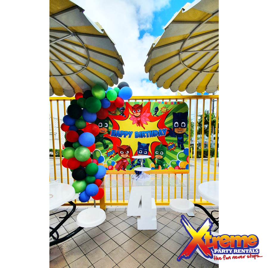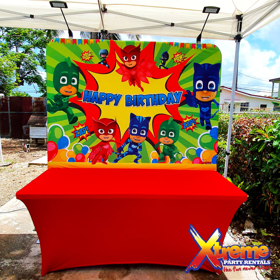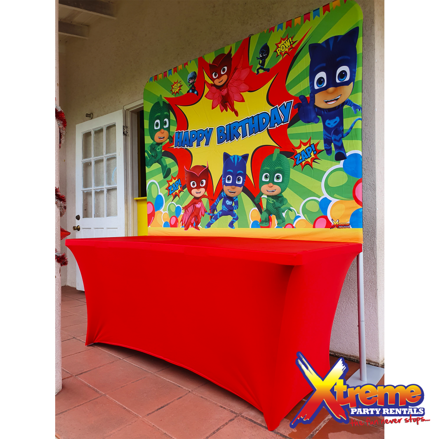 These backdrops are the perfect addition to your theme party. Pair it with your dessert table display or use it as a standalone display for your picture taking opportunities. Our 6ft framed backdrops were uniquely designed to cater to small spaces and be paired with a 6ft table, columns or a decorative balloon wall. The frame is approximately the width of the 6ft table and stands 7ft tall. However, unlike the 8ft full floor length backdrop, this stands legs are 76cm, so the entire backdrop image (4.5ft x 6ft) can be viewed above the table.