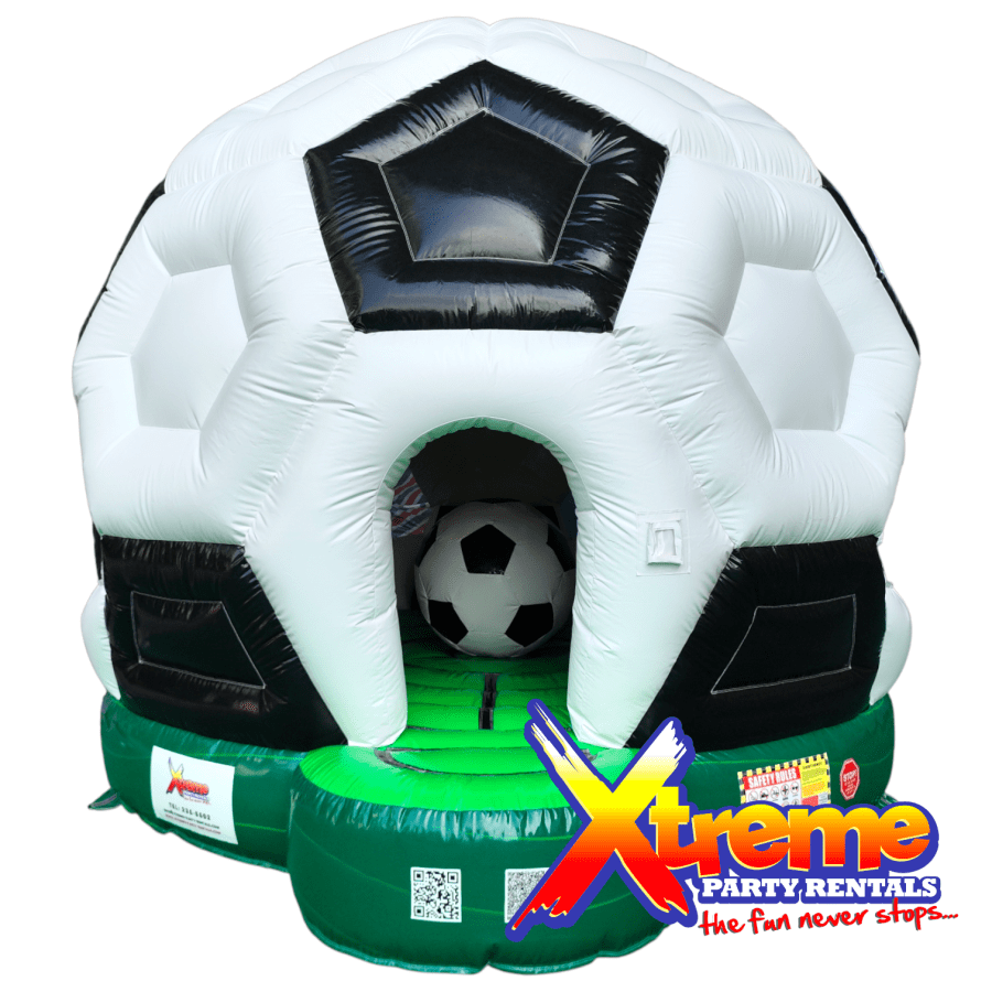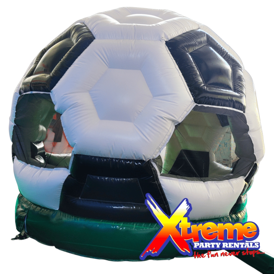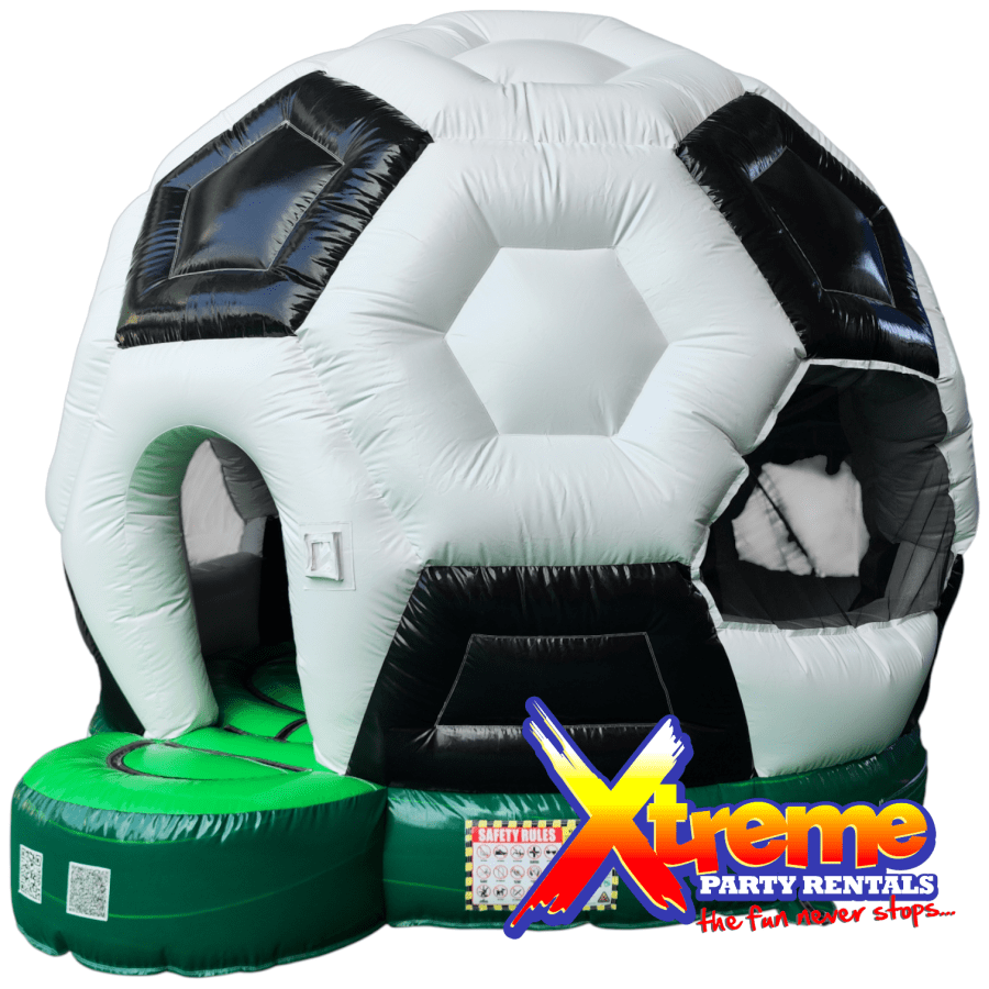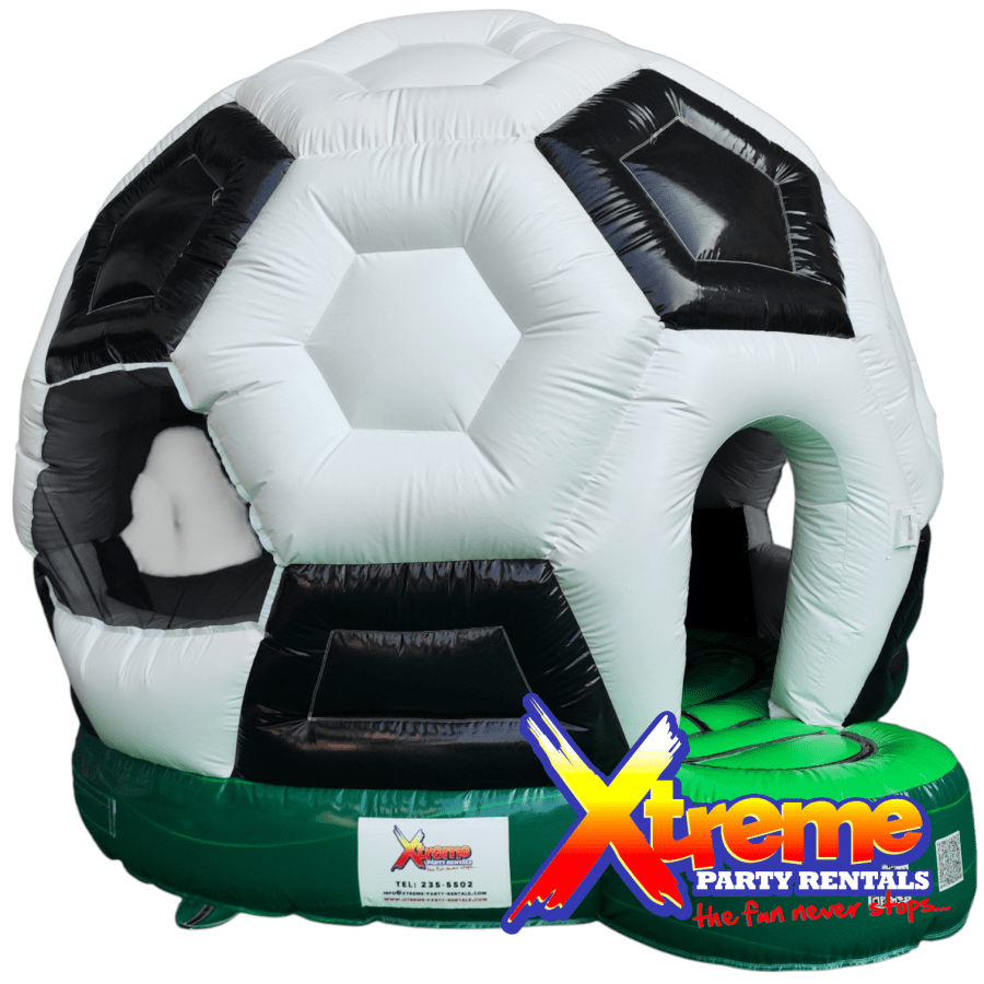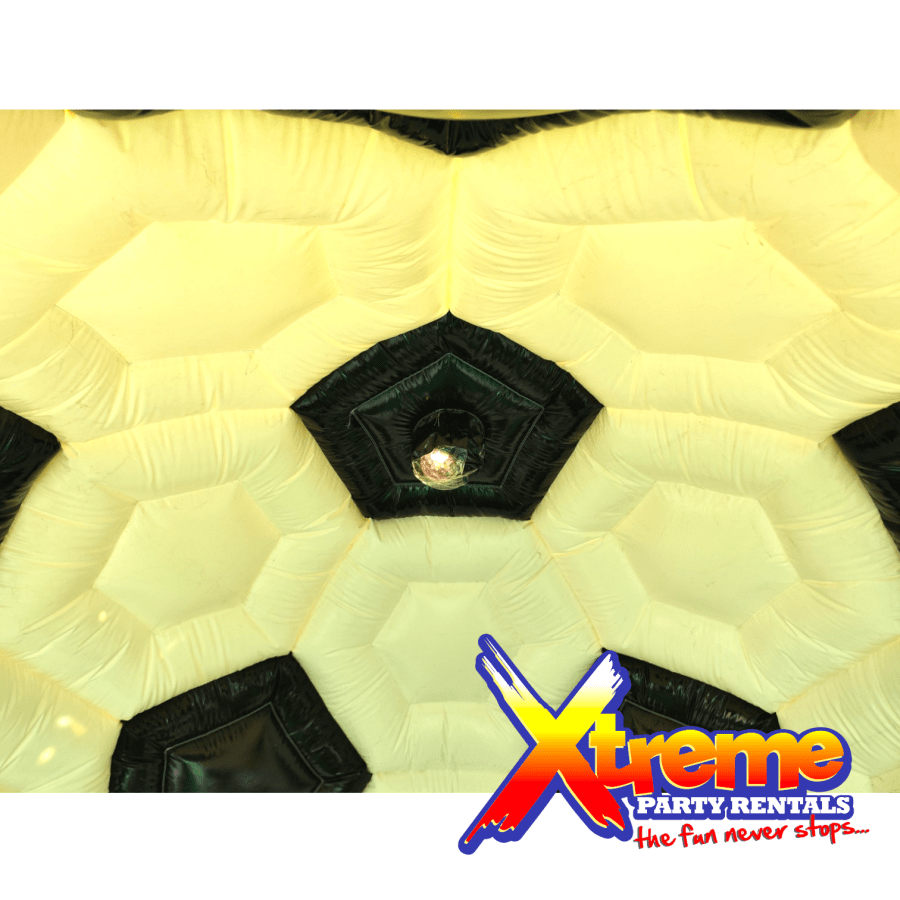 Make any event unforgettable with the 13ft x 13ft Soccer Disco Bounce in Barbados. This 13ft x 13ft x 13ft inflatable blends a classic black-and-white soccer design with a marble green grass base and a built-in disco light. Perfect for birthday parties, theme parties, and sports parties, it delivers fun, visibility, and fresh airflow for kids and adults alike.