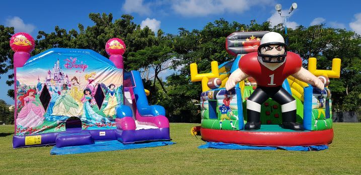 1. Bounce House or Waterslide: The primary inflatable unit that has been rented.