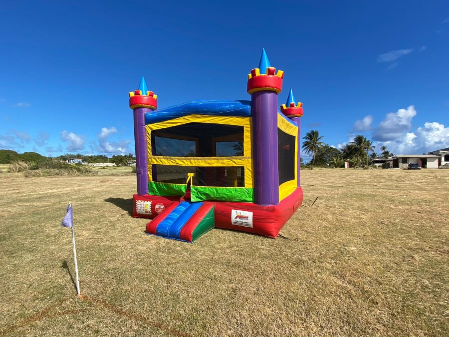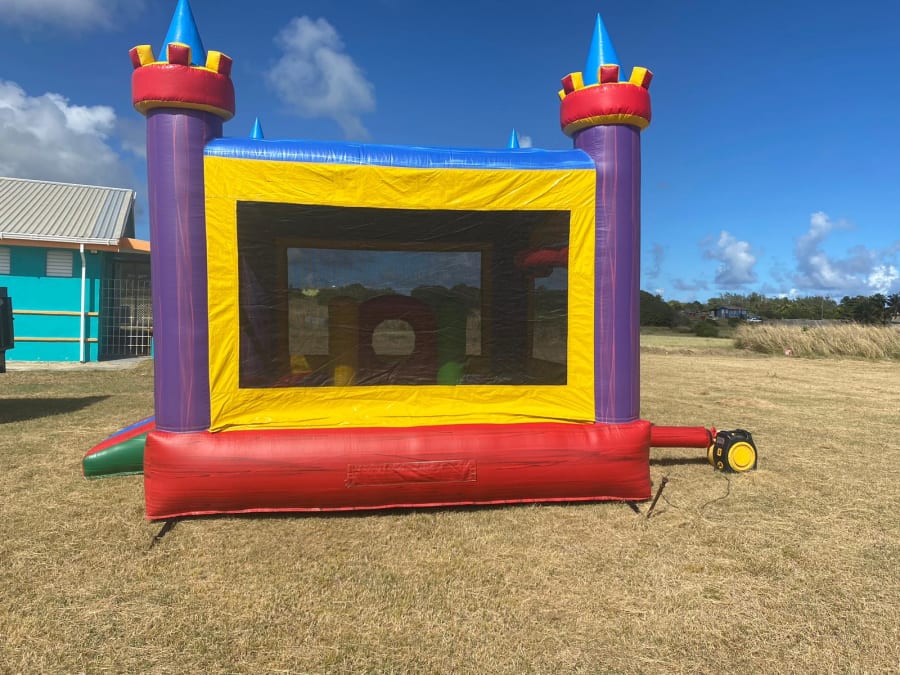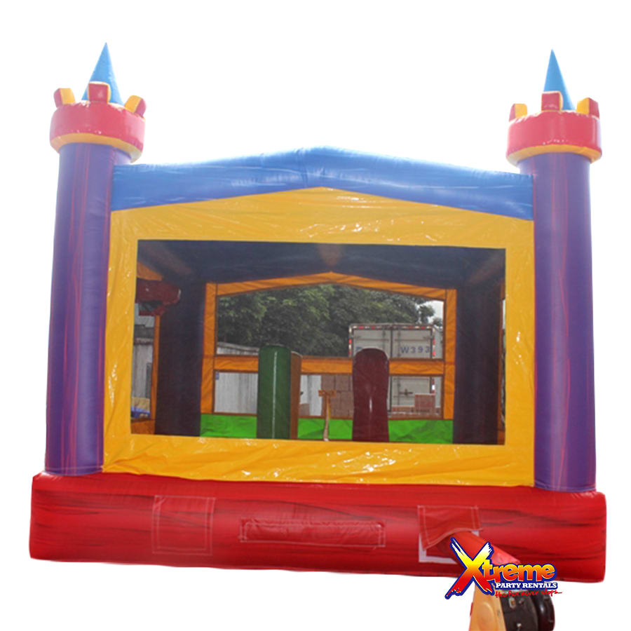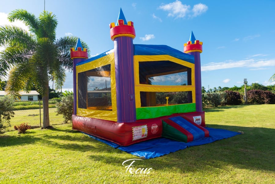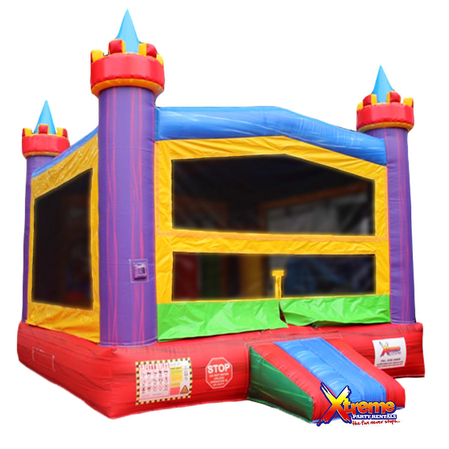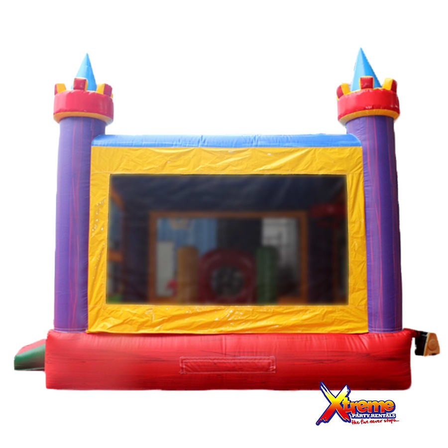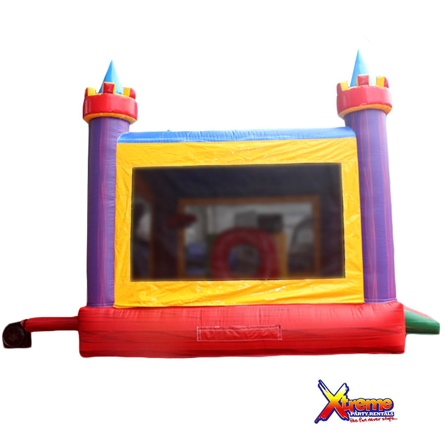 Our beautiful color castle features a 13ft x13ft bounce house with obstacles for added fun. It's spacious floor print will be suitable for most ages.