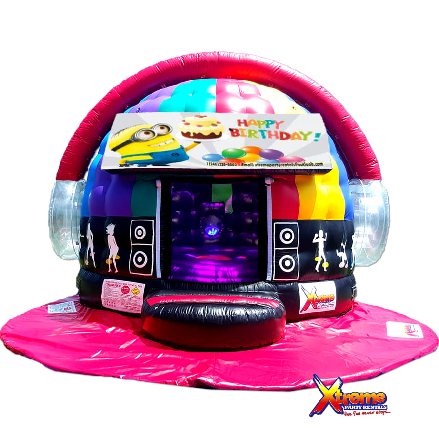Not your average jumping tent the Xtreme Mini Party Pod features a luminated headphone design. It's small footprint makes it the ideal size for any backyard party. Like all our Disco Domes this bounce house comes complete with lights and music. GREAT in the day and even better at night. No matter the age or theme children of all ages love that they can jump, sing and dance all day long even when the sun goes down.