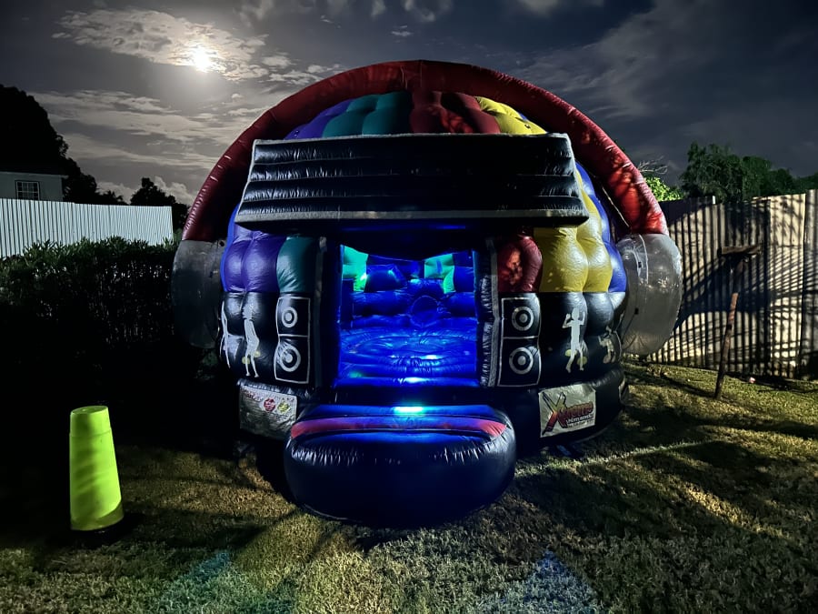 Not your average jumping tent the Xtreme Mini Party Pod features a luminated headphone design. It's small footprint makes it the ideal size for any backyard party. Like all our Disco Domes this bounce house comes complete with lights and music. GREAT in the day and even better at night. No matter the age or theme children of all ages love that they can jump, sing and dance all day long even when the sun goes down.