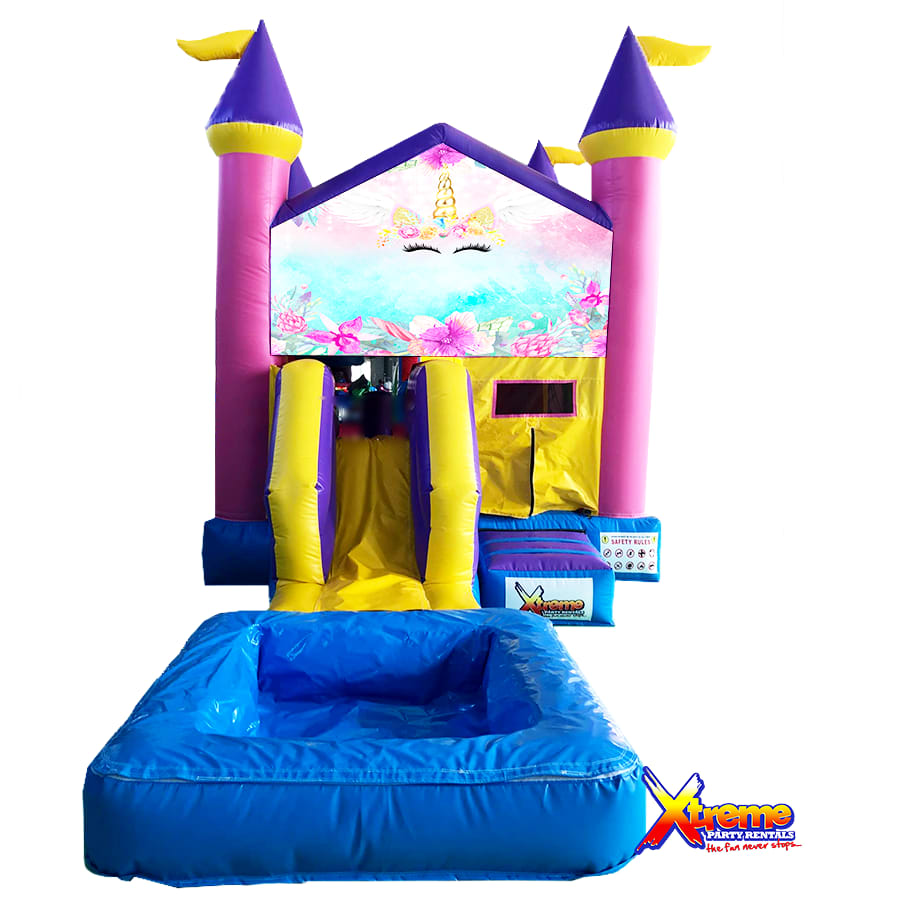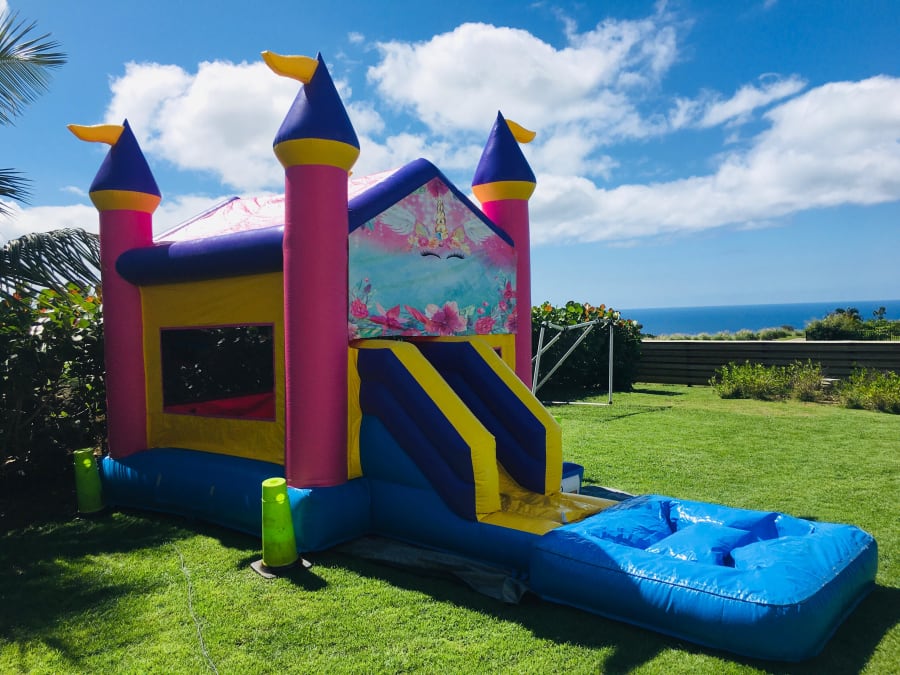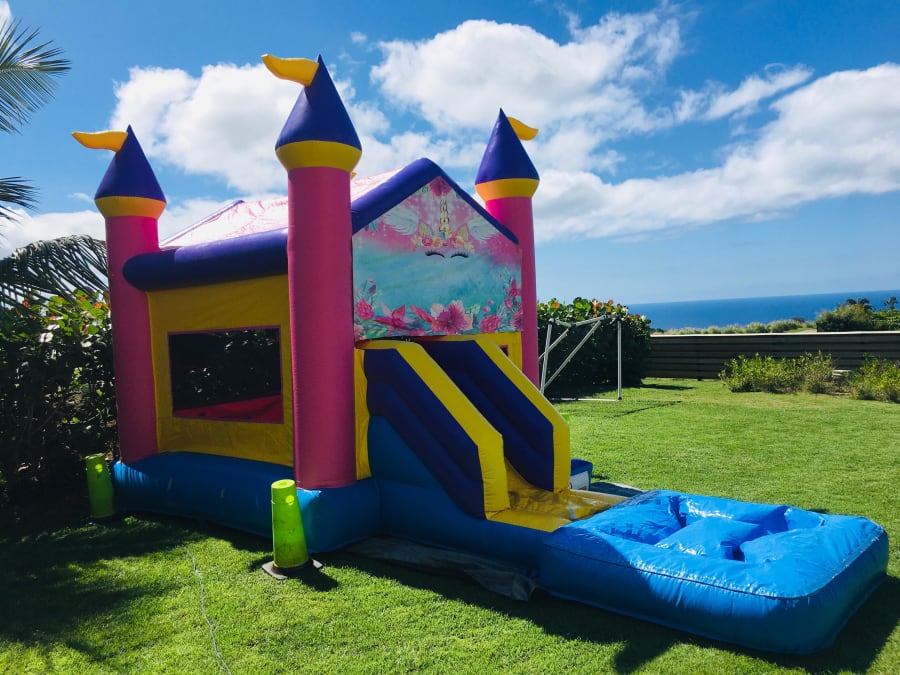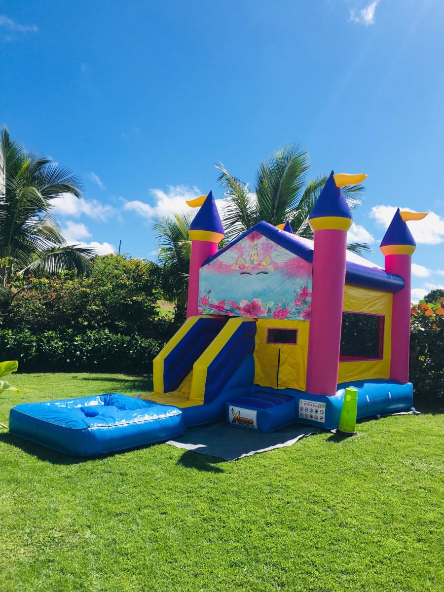 1. Bounce House or Waterslide: The primary inflatable unit that has been rented.