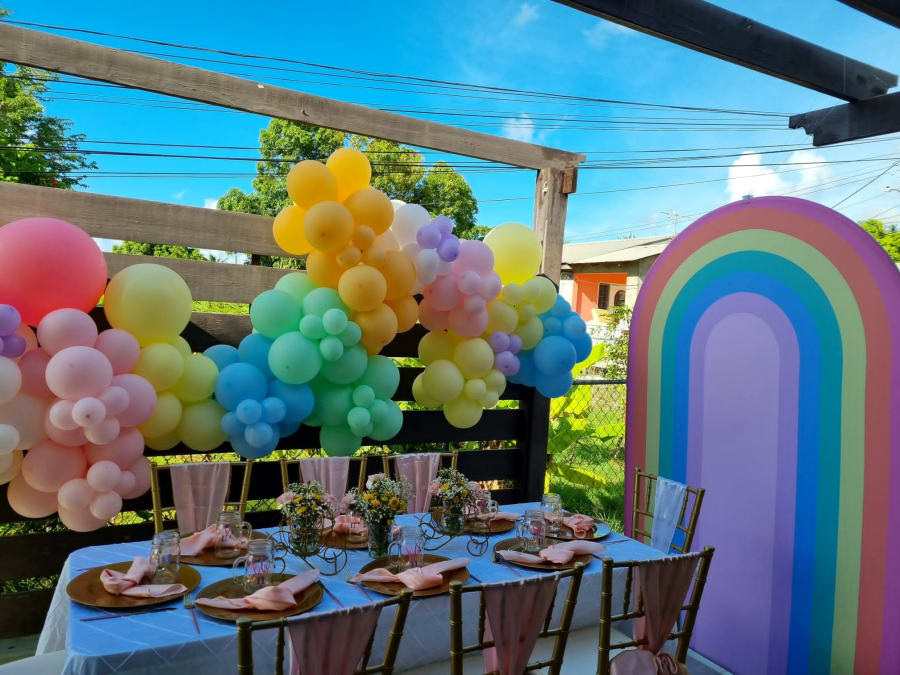5ft x 7.5ft Arch Backdrop - Pastel Rainbow 2
