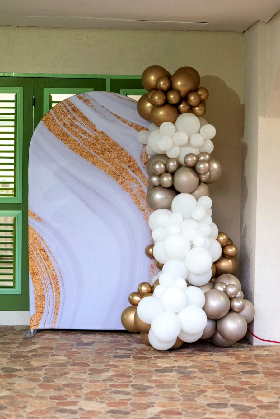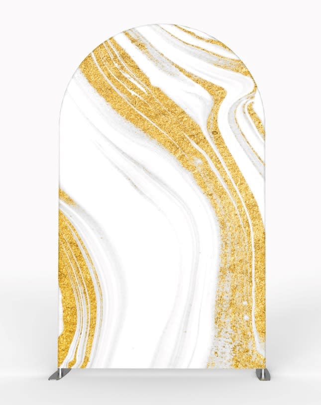 4ft x 6.5ft Arch Backdrop - White & Gold Marble