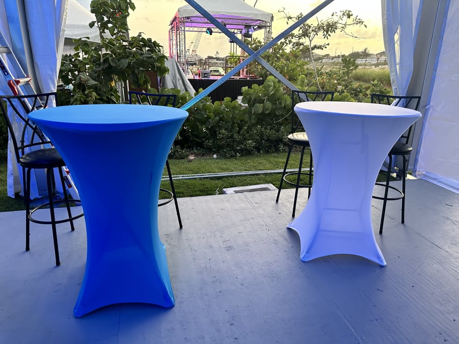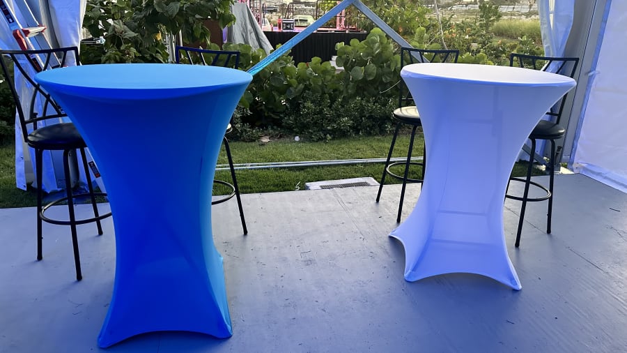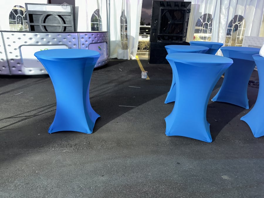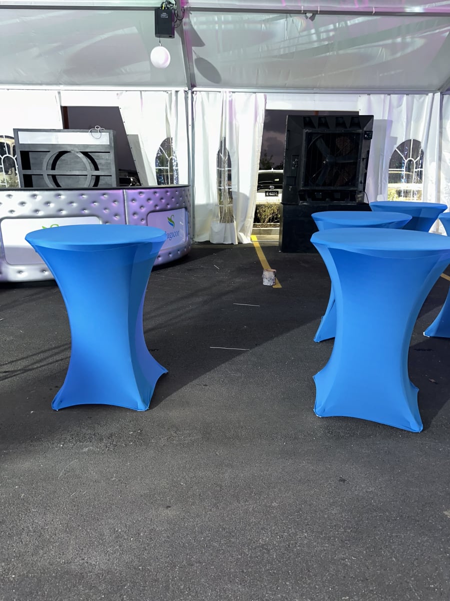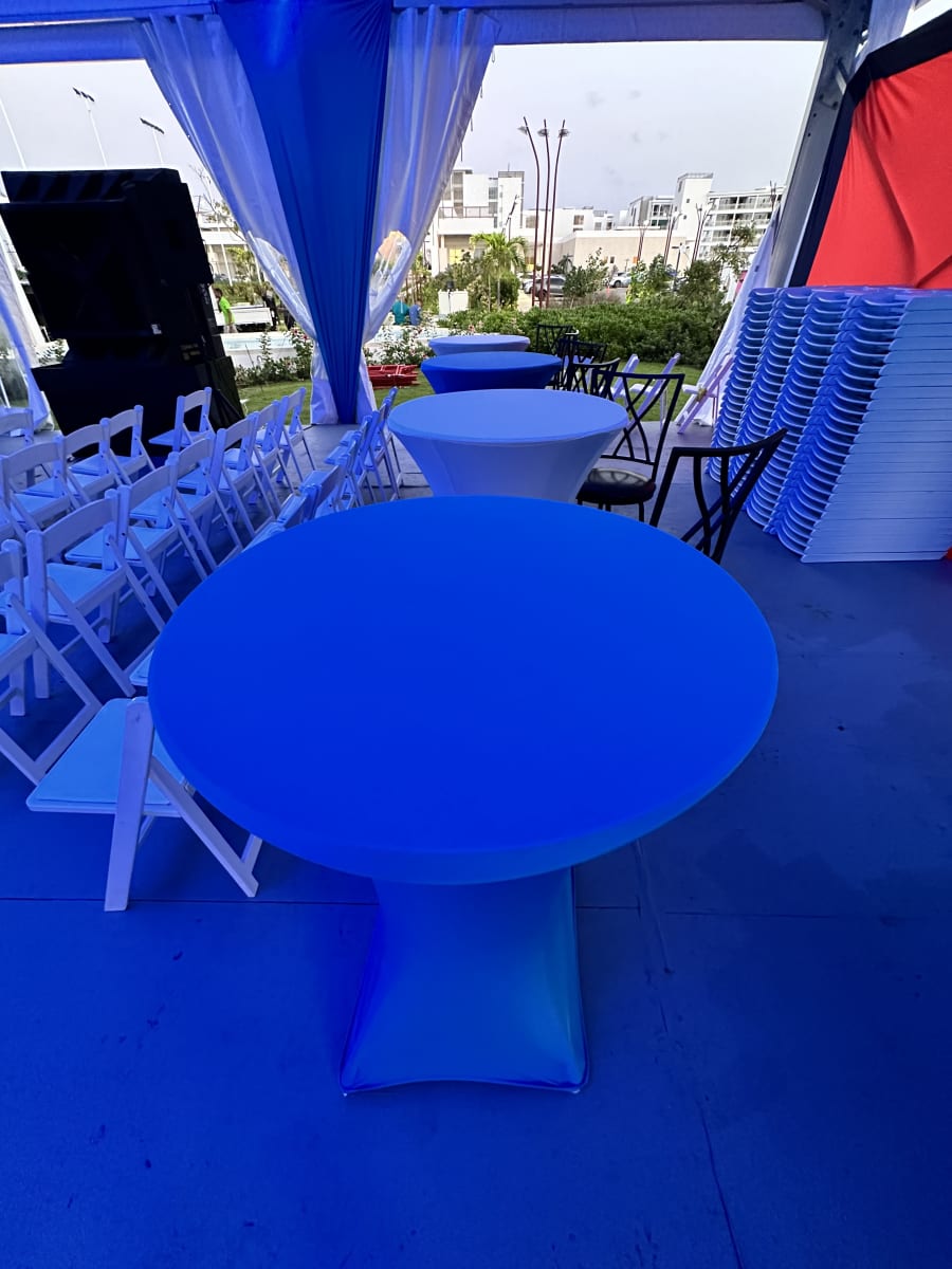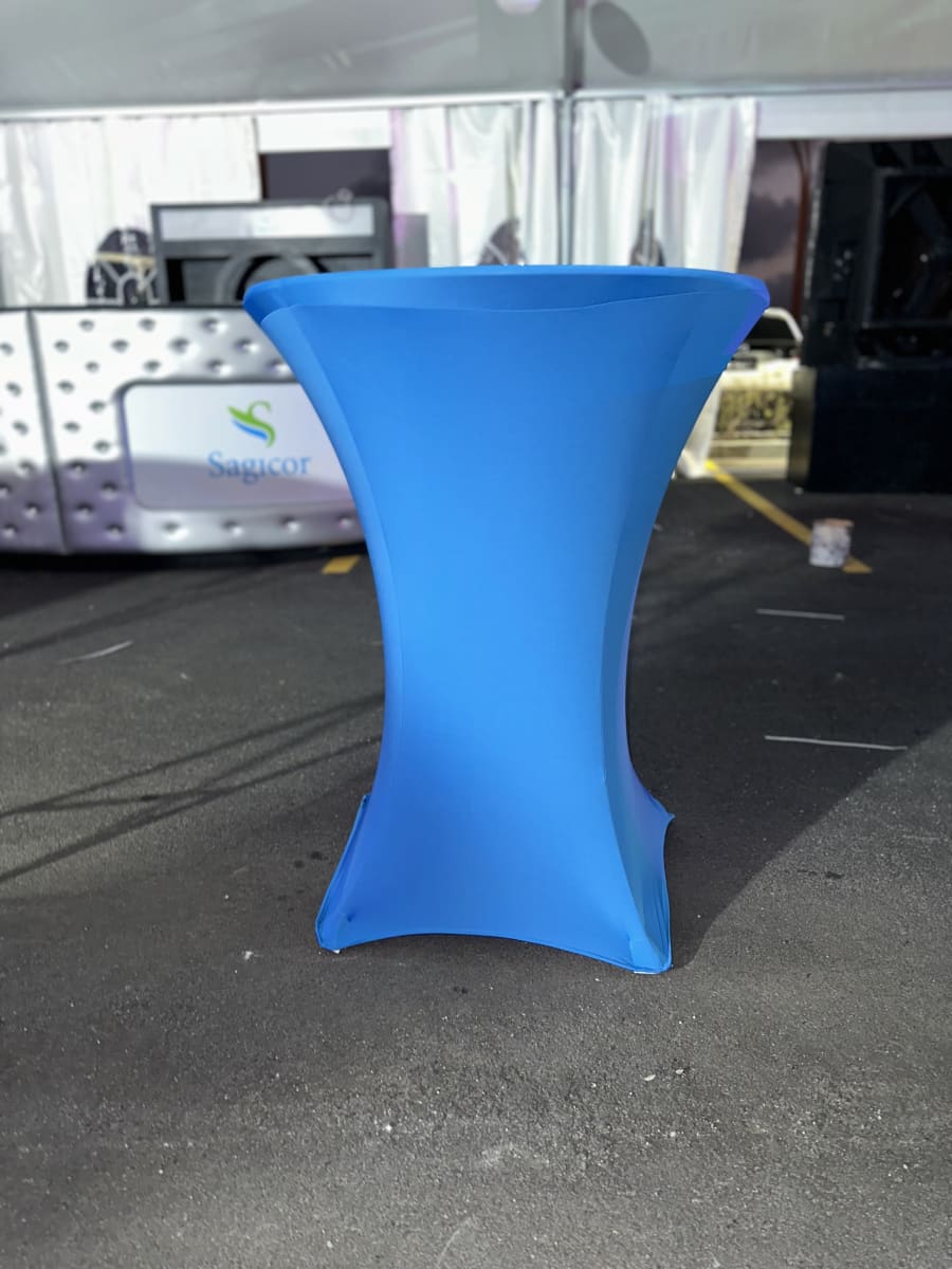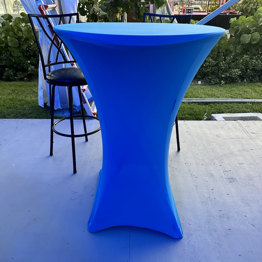 These 36 inches diameter x 42 inches table height cocktail spandex fitted tablecloth are for round cocktail table with 4 legs base. Our High folding cocktail table covers are suitable for events such as weddings, birthdays, showers, dinner rehearsals, corporate parties and simple family functions and whenever there is a requirement for functional, practical tables that are easy to use and to transport.