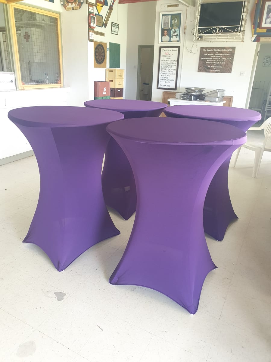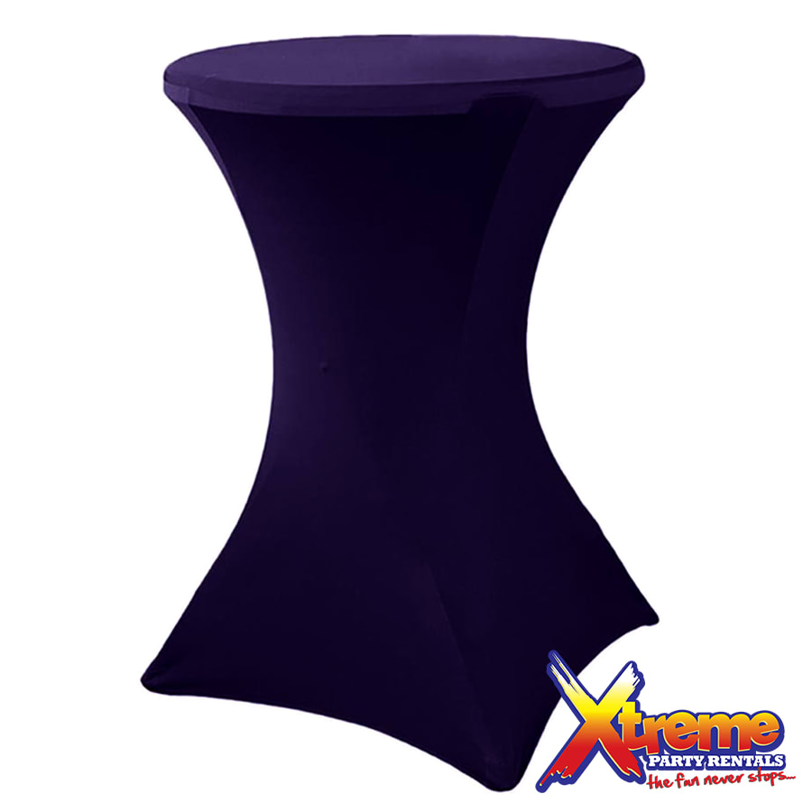 These 32 inches diameter x 43 inches table height cocktail spandex fitted tablecloth are for round cocktail table with 4 legs base. Our High folding cocktail table covers are suitable for events such as weddings, birthdays, showers, dinner rehearsals, corporate parties and simple family functions and whenever there is a requirement for functional, practical tables that are easy to use and to transport.