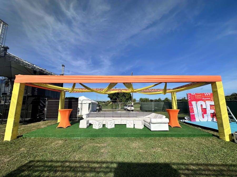 We prefer to setup on grass areas. However, smooth concrete areas are also accepted. The type of surface you choose to setup on is very important. We reserve the right not to setup on sandy, rocky or gravel areas of any kind with our inflatables and some linens. It causes damage and deterioration to the rentals and increases wear and tear to the vinyl products.