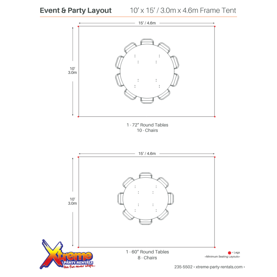 The 10ft x 15ft Frame Tent is an exceptional choice for intimate gatherings or as an extension to larger setups. With an eave height of 8 feet and a peak height of 10’6”, guests can mingle comfortably beneath its generous canopy. From weddings to family reunions, and community events to corporate meetings, this tent adapts effortlessly to your needs. 🥂