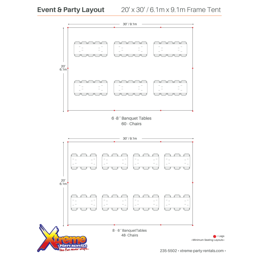 The 20ft x 30ft Frame Tent is engineered to grow with your guest list. Thanks to its sectional cover, you can effortlessly expand the tent from 20ft x 30ft to 20ft x 40ft, or even larger configurations like 20ft x 60ft and 20ft x 80ft with the addition of gutters and attachments. Hosting a more intimate affair? Explore our full range of frame sizes, including 10ft x 10ft, 10ft x 15ft, 10ft x 20ft, 15ft x 15ft, and 20ft x 20ft. Custom layouts—such as 10ft x 30ft—are simple to create, ensuring a perfect fit for any celebration!