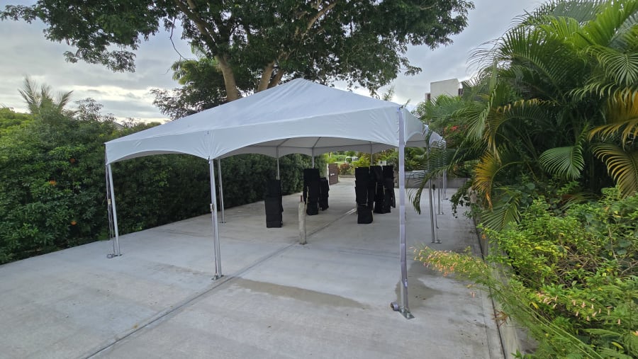 Make your next event unforgettable with our 20ft x 30ft Frame Tent—the ultimate solution for hosting all occasions in Barbados! Designed to impress, this high-quality tent offers the sophisticated appearance of a high peak tent, minus the peak, and features a tensioned valance for a modern, seamless look. Whether you're planning a wedding, corporate event, birthday celebration, or family gathering, this tent provides both style and adaptability to suit your needs.