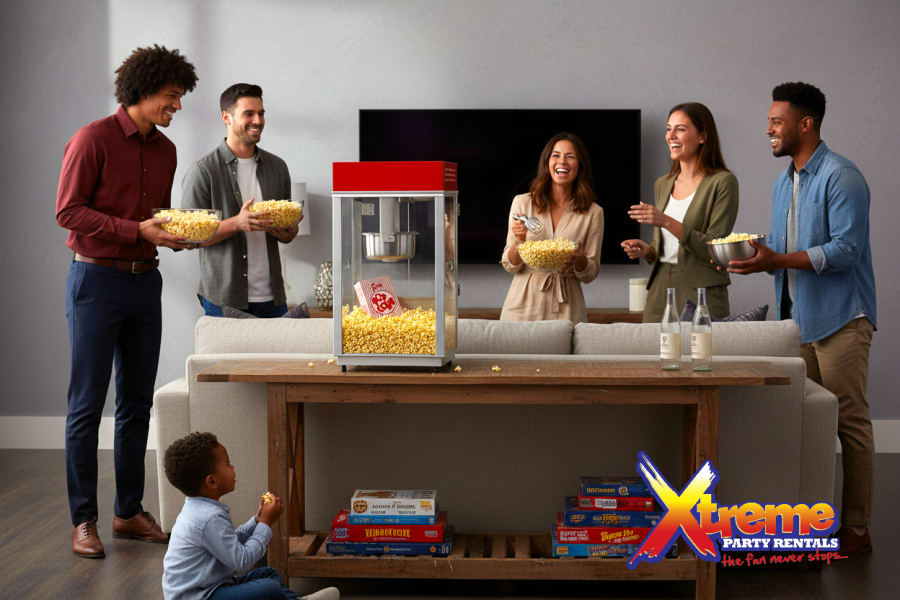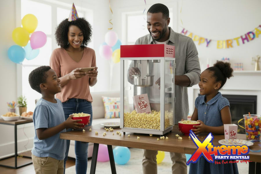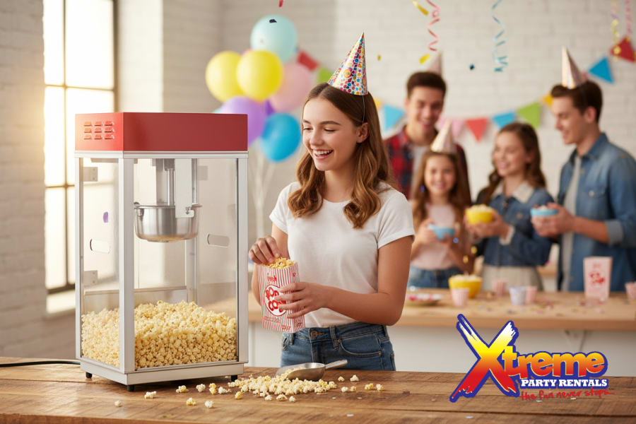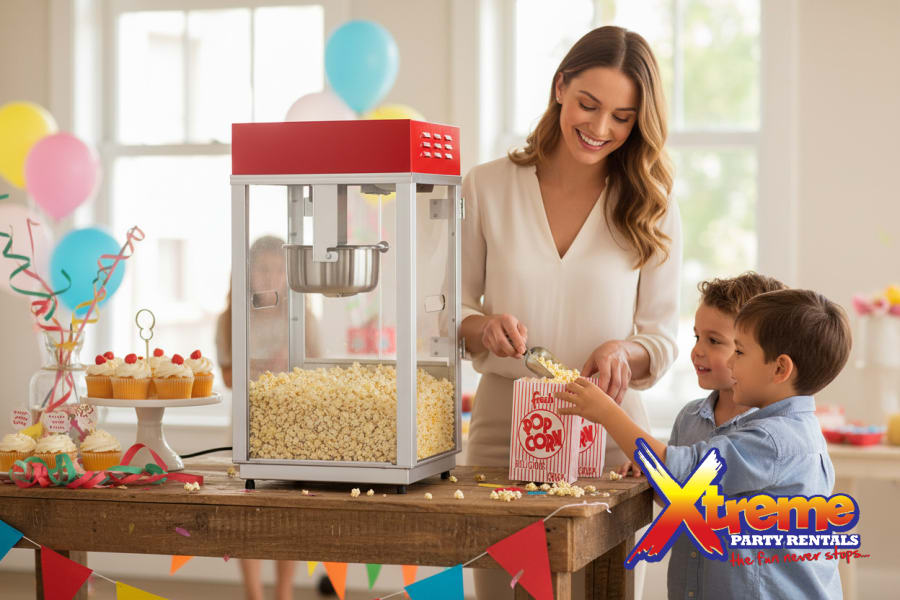 Whether you're hosting a birthday party, corporate event, or movie night, our popcorn machine will be a hit with guests of all ages. Its compact size and convenient portability make it perfect for event rentals, allowing you to easily set up and serve delicious popcorn wherever you go. 🎈