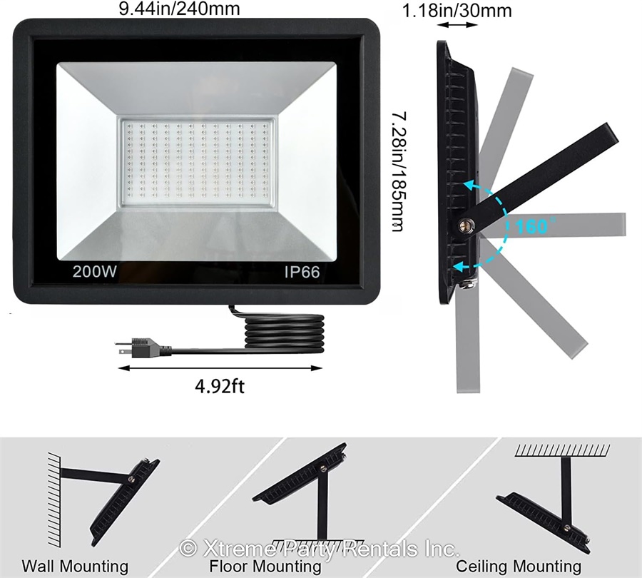 • Bright, reliable output: 200W power for strong UV illumination that covers up to 500 square feet — ideal for medium to large party areas.