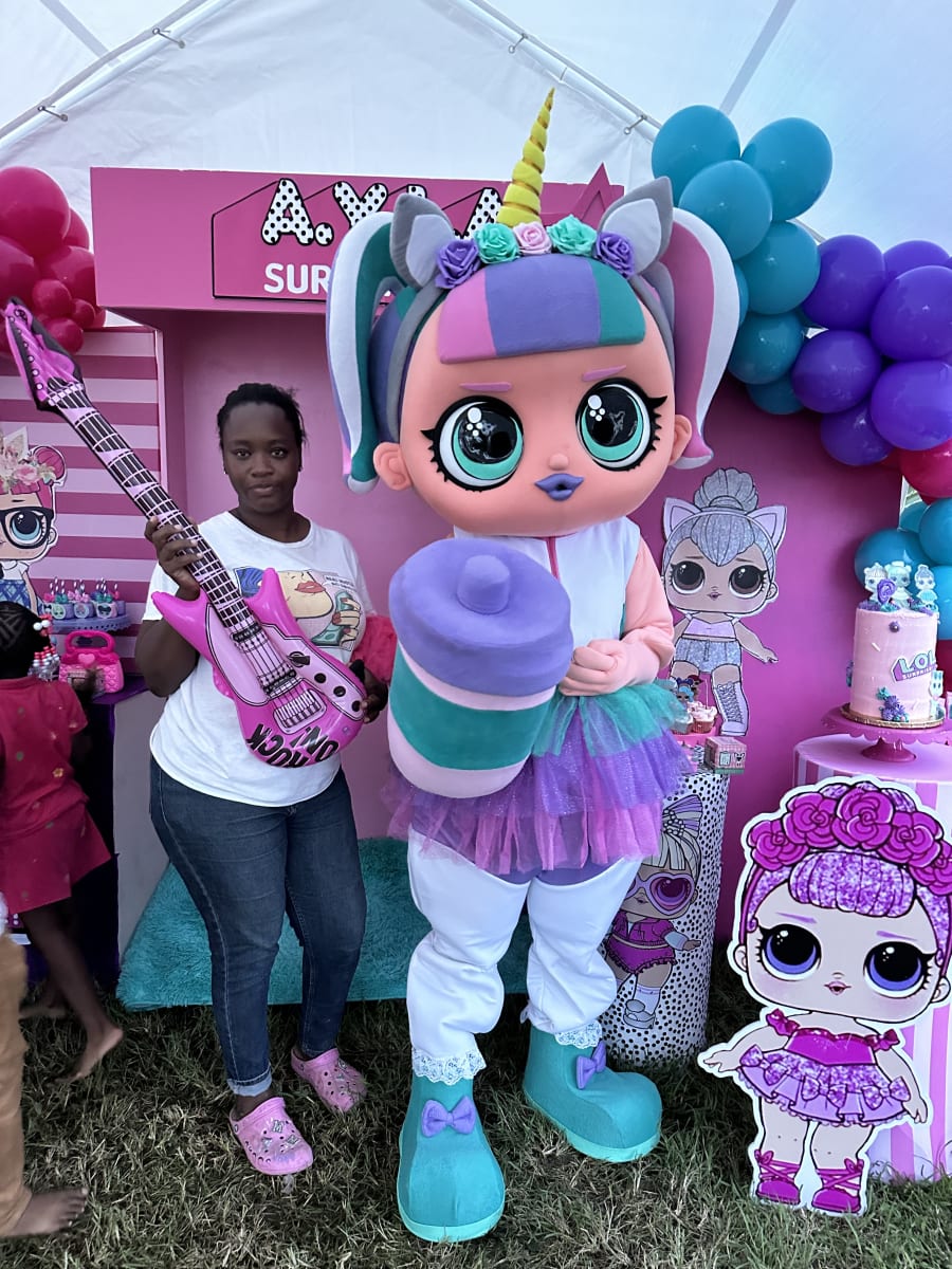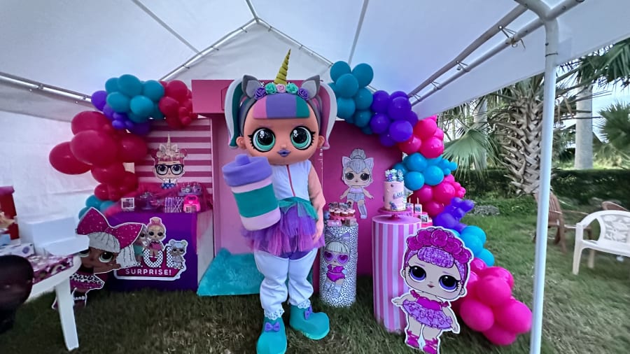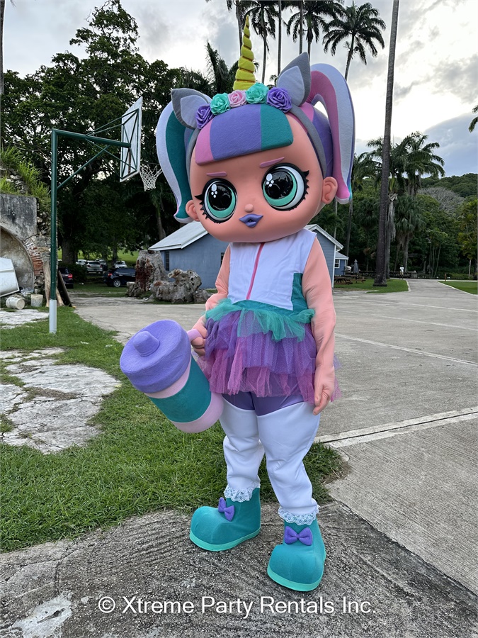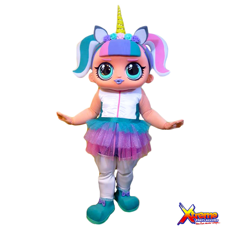 She is the cutest member of our Character Pals. This L.O.L Unicorn lookalike mascot is the perfect addition to your girl's party. Now you can have a unicorn and L.O.L themed party...you don't have to choose!