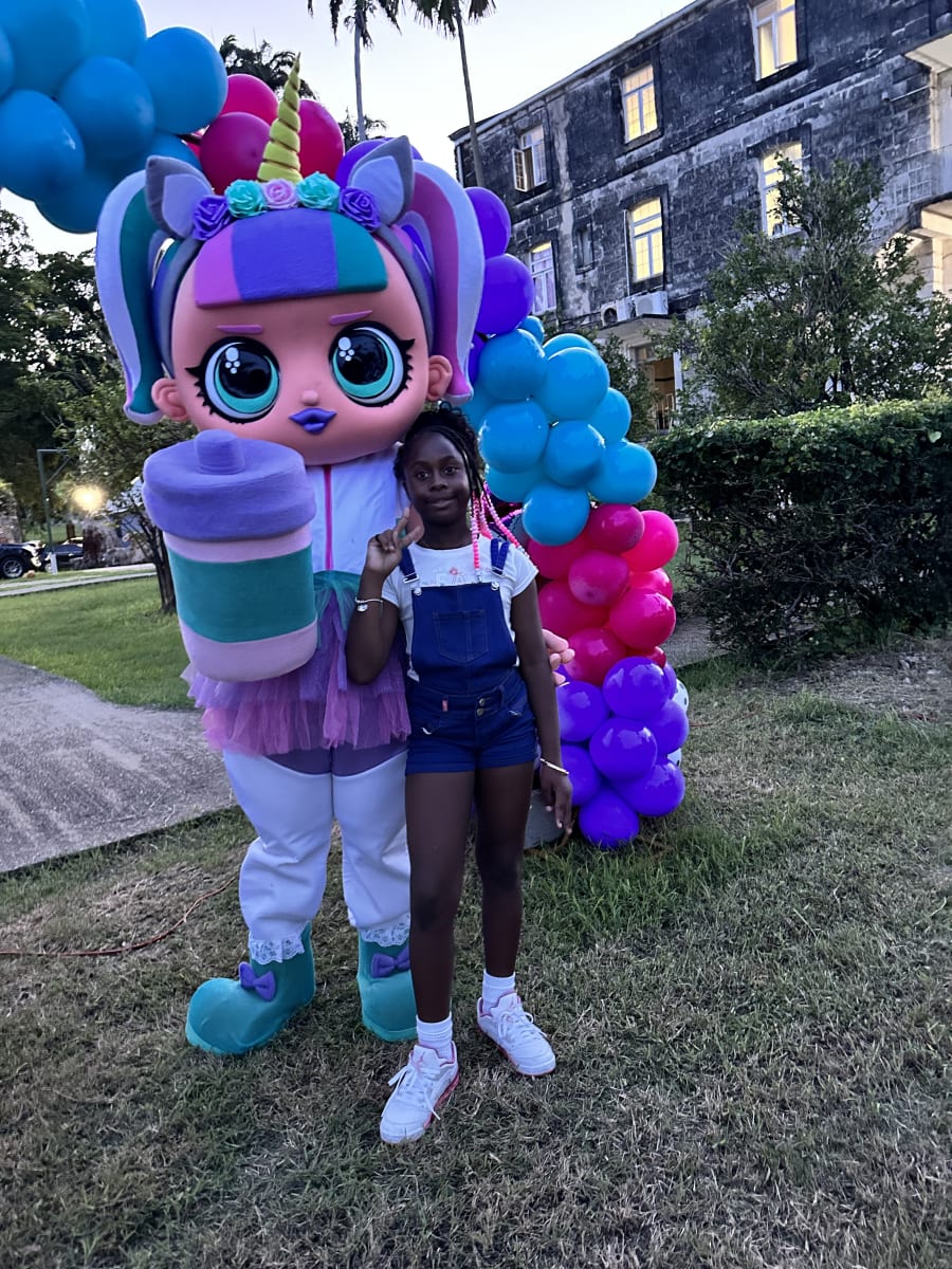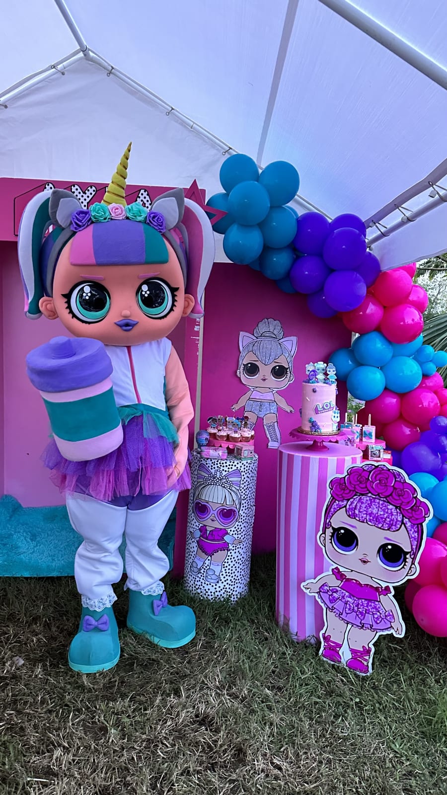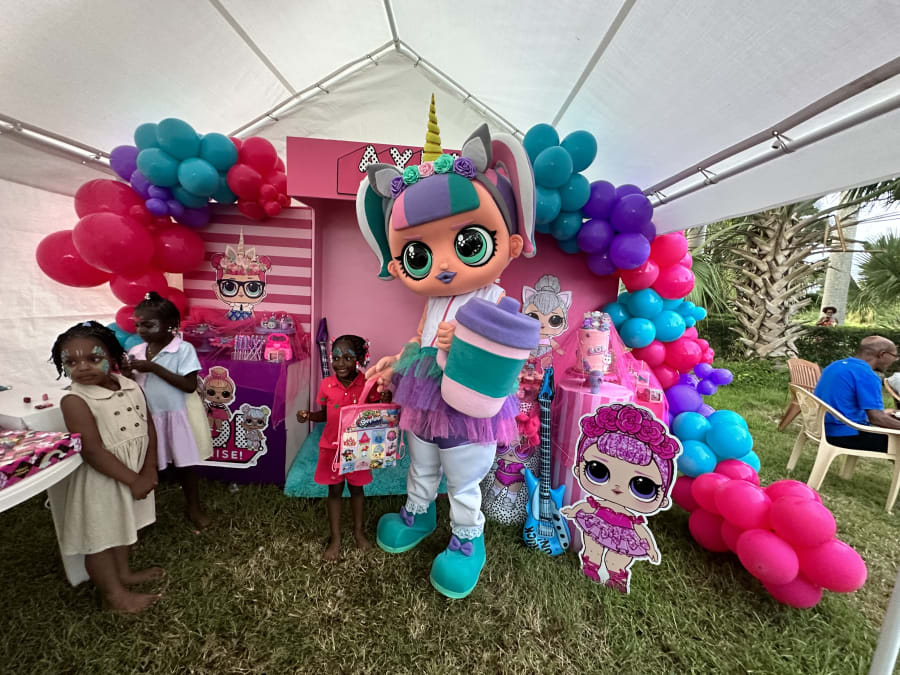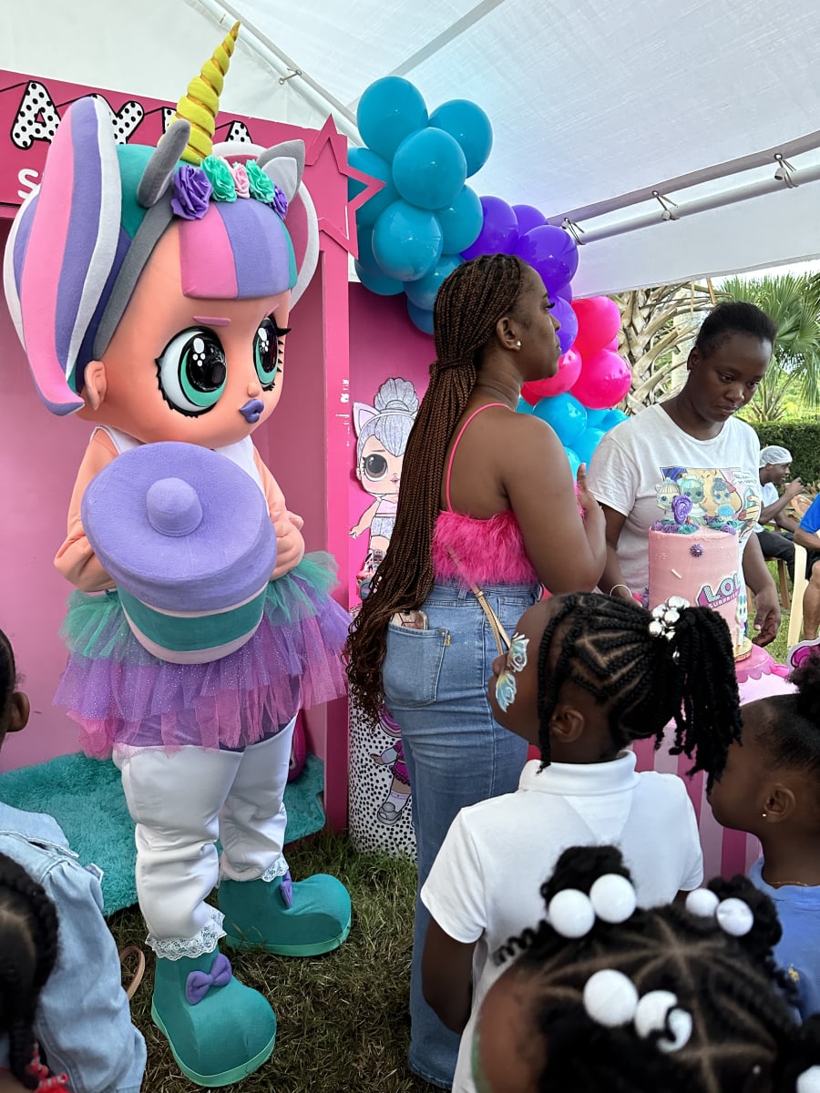 She is the cutest member of our Character Pals. This L.O.L Unicorn lookalike mascot is the perfect addition to your girl's party. Now you can have a unicorn and L.O.L themed party...you don't have to choose!