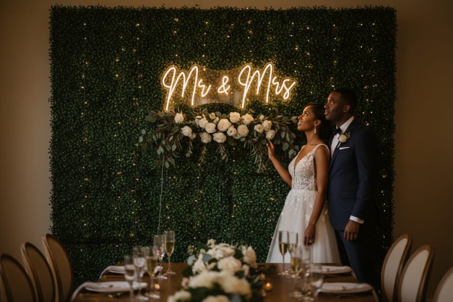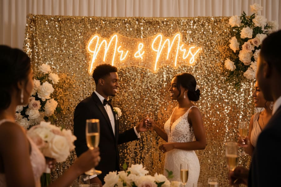 Whether you’re planning an elegant ballroom reception or a barefoot beach fête, the Mr & Mrs Neon Sign is easy to install and instantly transforms any space into something celebratory. It’s an ideal accent for photo booths, head tables, and entrance displays — and yes, it plays wonderfully with fairy lights and tropical décor. Think Bajan vibes with a Hollywood glow. 🌺📸