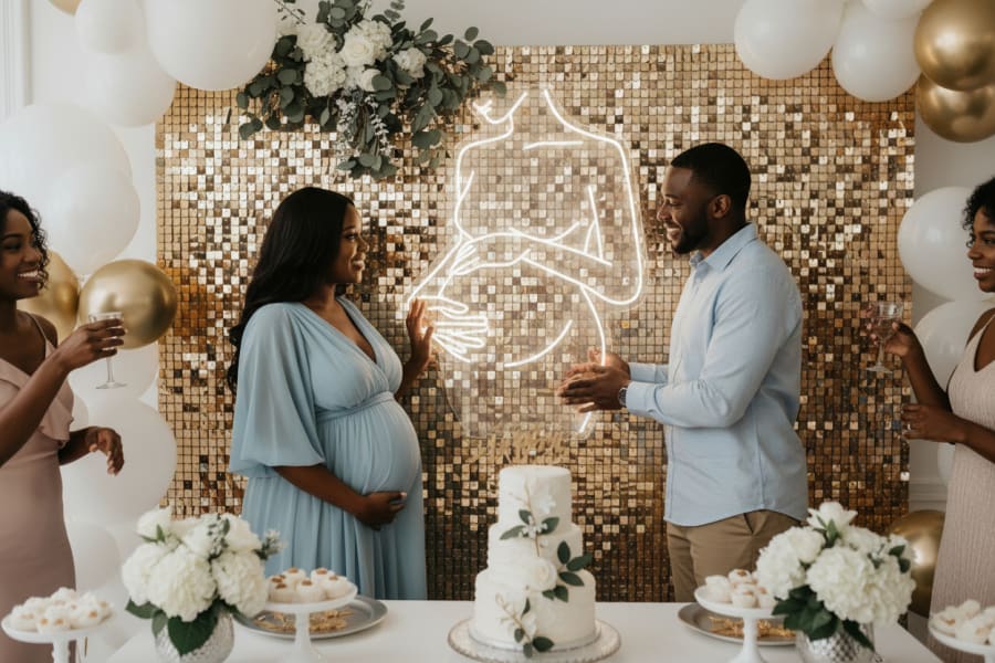 This neon sign is the perfect blend of sweet and chic. It’s bold enough to be a centerpiece, soft enough to add warm ambiance, and simple enough to complement any colour scheme — from pastel lullaby to bright island fiesta. Ideal for baby showers, christenings, and mom-to-be celebrations, it creates those “pin this on Instagram” moments every host dreams of.