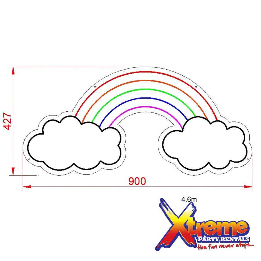 Make every celebration pop with the Rainbow Clouds Neon Sign. This eye-catching neon rainbow with dimmer measures 90 x 43 cm (approx. 3 x 1.4 ft). It features six vivid neon lines in rainbow colors and two crisp white cloud silhouettes below. Ideal for kids events, baby showers, and birthday parties. Bright, playful, and easy to mount.