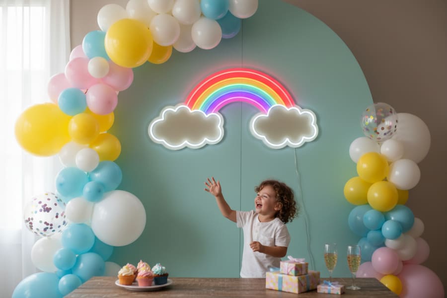 Ready to brighten your event? Add the Rainbow Clouds Neon Sign to your decor now and transform any space into a colorful photo-ready moment. ✨