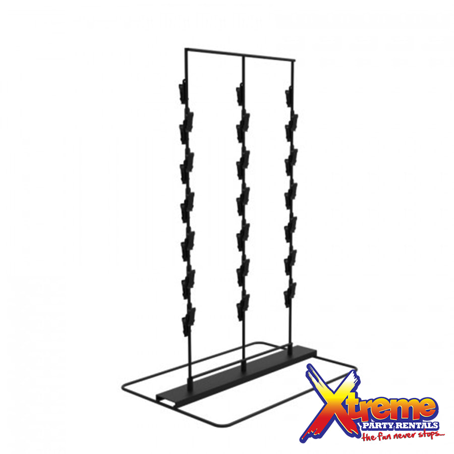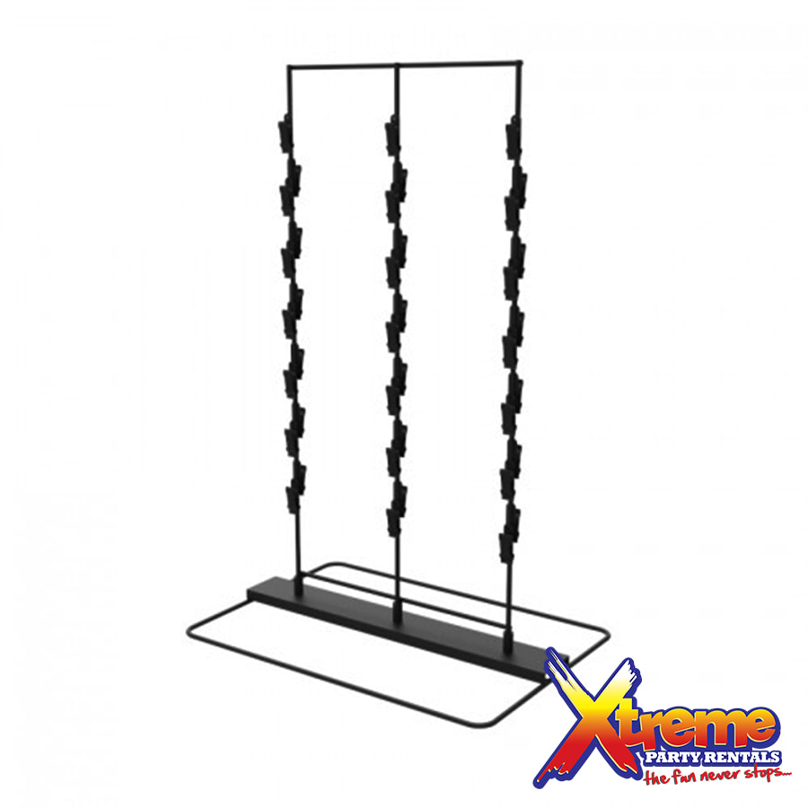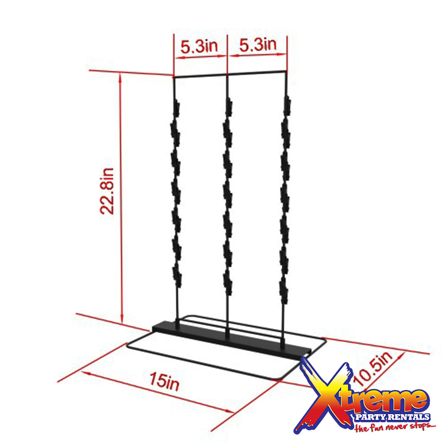 This chip snack stand is ideal for theme parties and treat table displays. It is perfect for all occasions: adult parties, weddings, birthday parties and baby showers. It's clip strips are great to display items such as candy, popcorn, chips, cotton candy, gum and other snacks. Each wire display is equipped with strip clips, a total of 39 clips. The metal snack stand's height makes each pre-packaged item visible on the table, pedestal or column. The push clip mechanism makes it easy for the host to replenish items on the stand as they are removed. Click here for our Chip Snack Stand- White