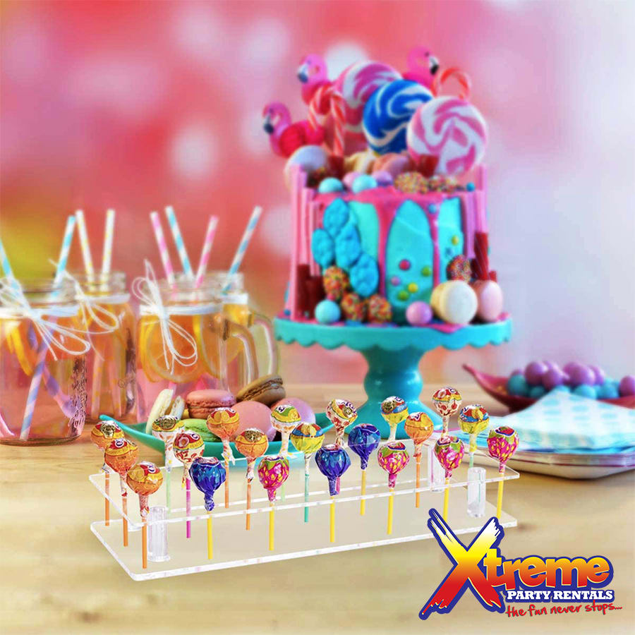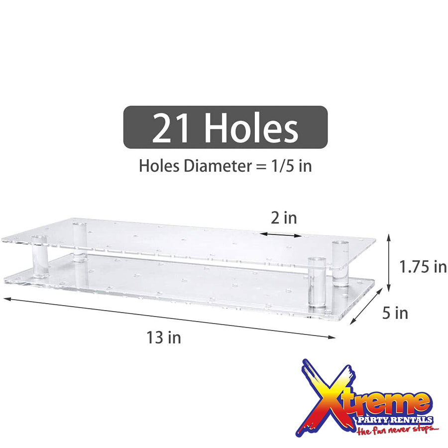 This Lollipop Acrylic Display Stand can hold 21 stick of lollipops or cakepop treats. Now you can display your stick treat in a fun unique way with our clear acrylic 21 hole stand instead of laying them flat on the table. Acrylic displays are the perfect choice to pair with Event Backdrops. Wow your guests at a picture perfect wedding, birthday, graduation party, baby or bridal shower event. Choose this today and lets give your desert the presentation it deserves.