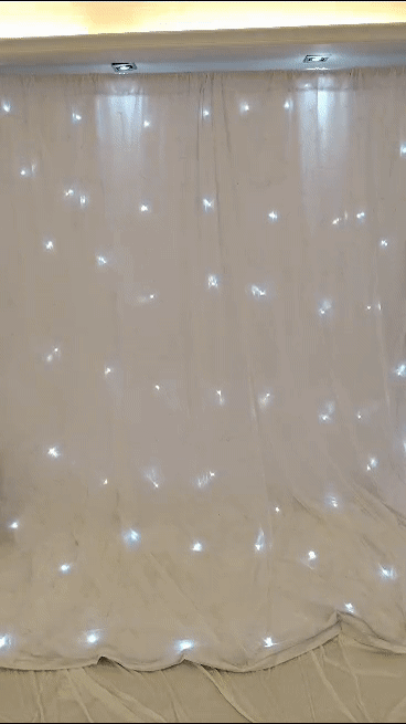 Perfect for any setting, the 12ft Starlight Drape offers multiple light effects and a music/sound-activated mode, ensuring your backdrop is always in sync with the mood of your event. With 17 different programs and an easy-to-use control system, including DMX, sound active, and automatic modes, you can effortlessly adapt the ambiance to suit your needs.