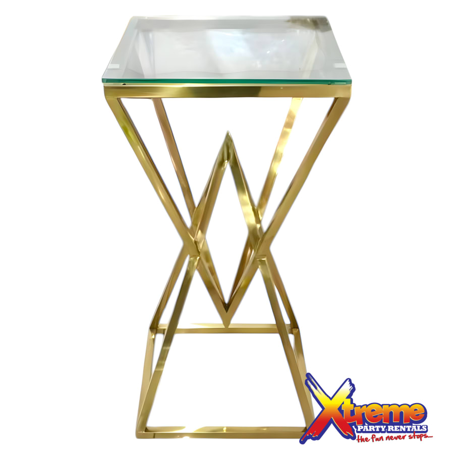 Crafted with precision, the Diamond Cake Table features a shiny stainless steel frame and a clear tempered glass top that beautifully showcases your cake. With dimensions of 40cm x 40cm and standing at 80cm high, this table offers ample space for your celebratory cake while maintaining a sleek and stylish profile. The intersection of its diamond points adds a unique architectural flair that is both contemporary and timeless.