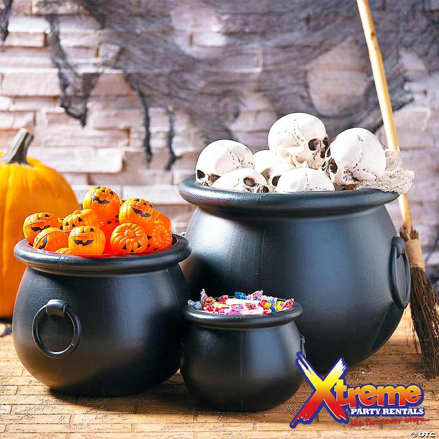 Get ready for some Halloween Fun! This plastic black cauldron set consists of three sturdy cauldrons that can be used for candy, games decorations and more!