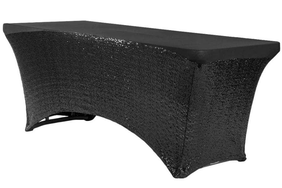 6ft Spandex Sequin Table Cover- Black
