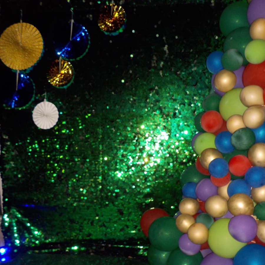 This Sparkling Peacock Backdrop features large shimmery blue green mermaid sequins. It is an excellent choice for parties - weddings, baby showers, birthday parties, disco themes and occasions of any kind.
