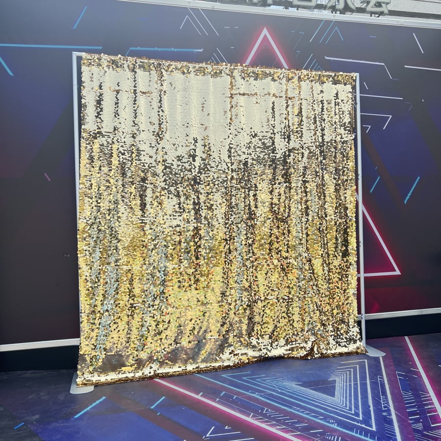 To book this 8ft x 8ft Large Mermaid Sequin Gold our Sequin Backdrops or any of our 8ft Sequin Backdrops & Pipe 'N' Drape packages click the buttons below to check on availability.