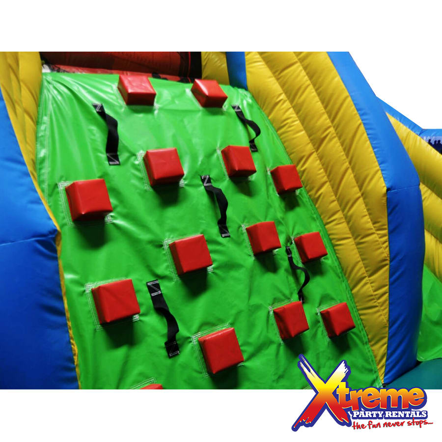 🎉 This inflatable features a centered rock climb that challenges kids to conquer the climb and reach the top. Once they've conquered the climb, they can choose between two thrilling slides to zoom down and experience the exhilaration of sliding.