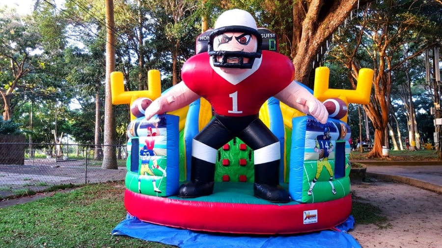 🏈 With its eye-catching yellow American football theme, this inflatable will transport kids to the exciting world of American football. The 16ft x 16ft diameter provides ample space for kids to run, jump, and play, making it a fantastic addition to any event.
