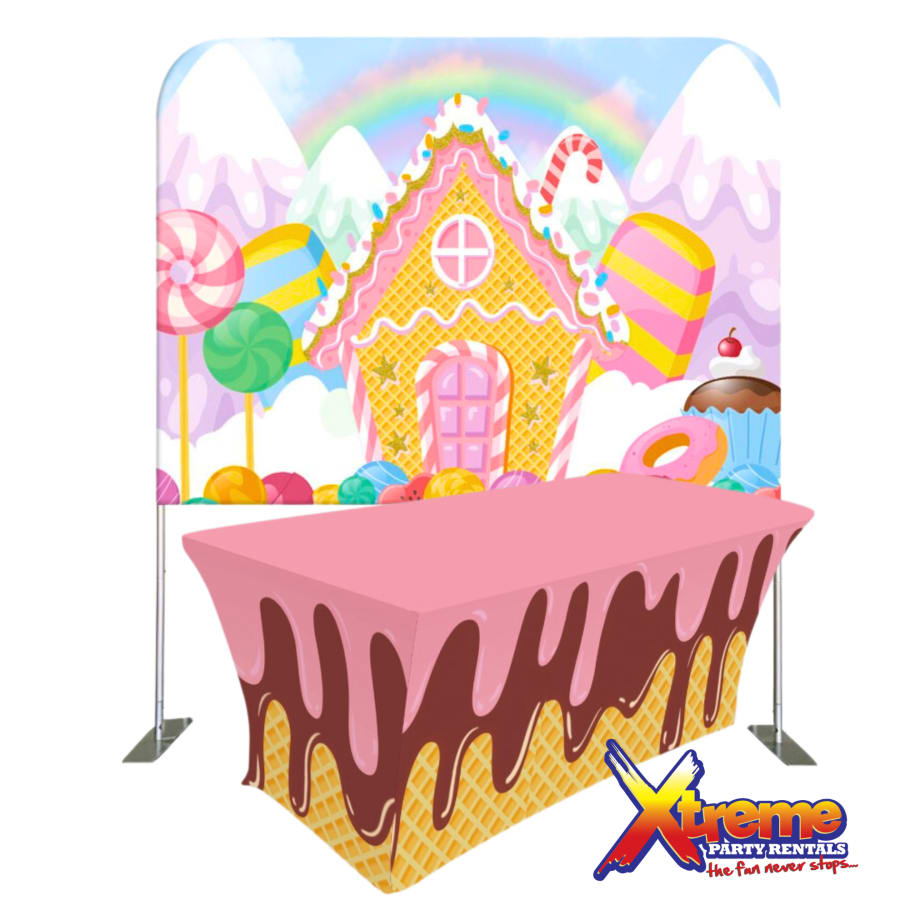 Our 6 feet spandex rectangular ice-cream themed table cover is perfect for birthday party, dessert table or candy themed event rentals.