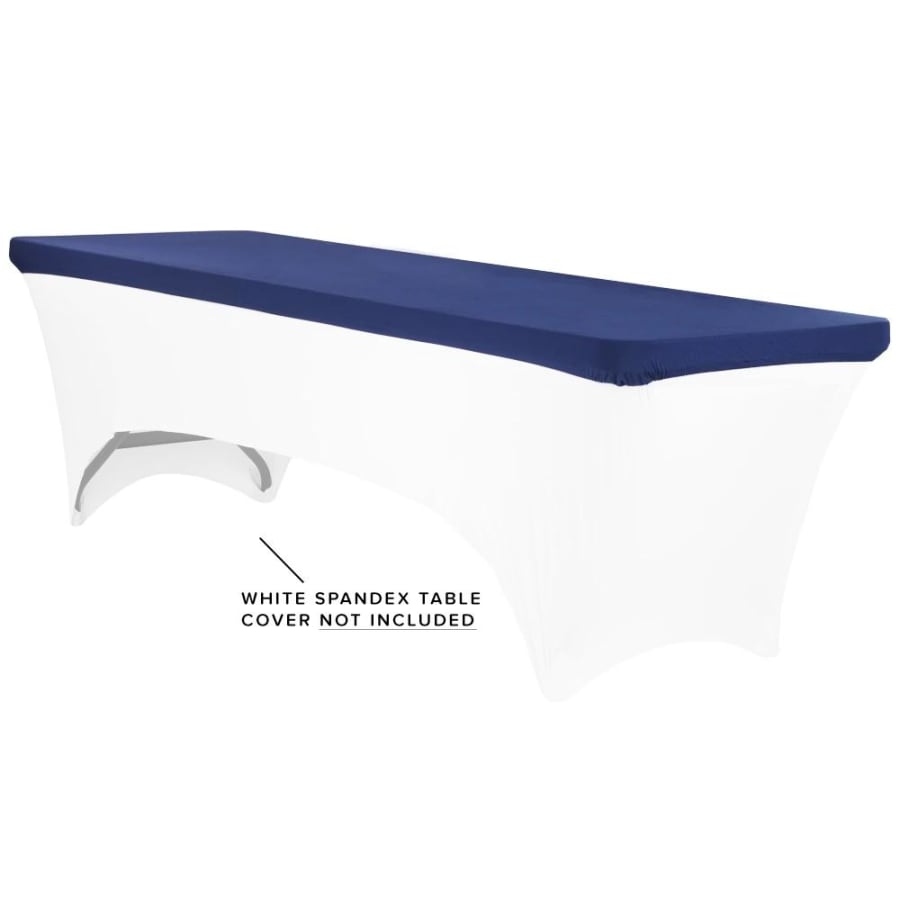 Upgrade your 8ft rectangular tables with our Spandex Table Topper/Caps! Effortlessly add additional color to your tables by slipping one of our Spandex Table Caps over the tabletop. Each table cap features a durable stretch band on the inside to accommodate 8ft rectangular tabletops. Not only are these table caps a great way to incorporate more of your décor colours, but they're also a perfect way to protect your tabletop from spills or stains.