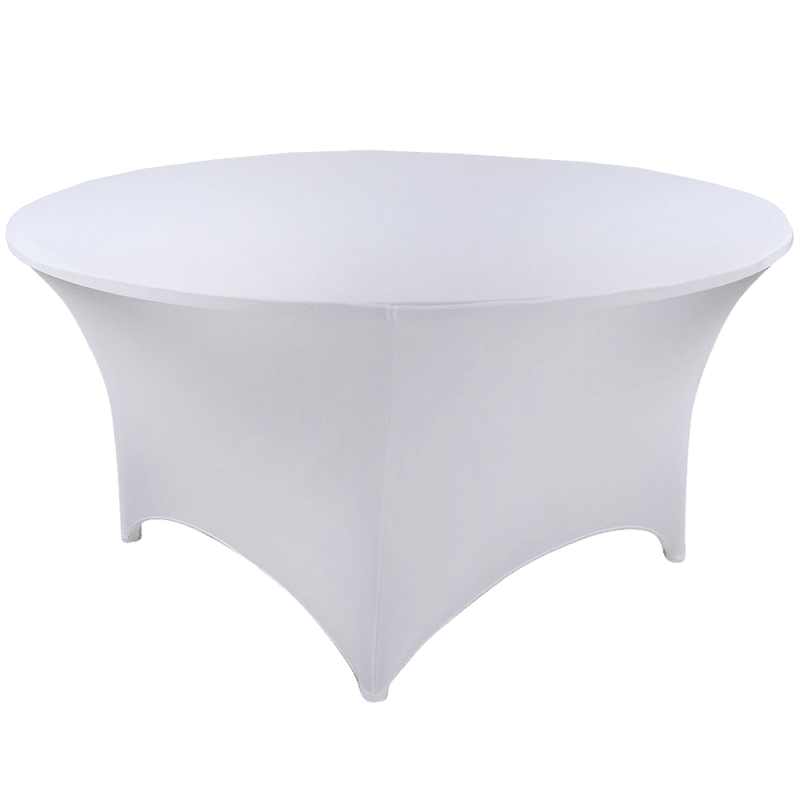 Our tablecloths are made of premium quality stretch polyester and are designed to be durable, wrinkle and stain resistant. The 5ft (60inches) round spandex tablecloth is one of the most popular sizes of table linen. This size can be used on a standard 60 inches diameter x 30 inches height round table with 4 legs base.