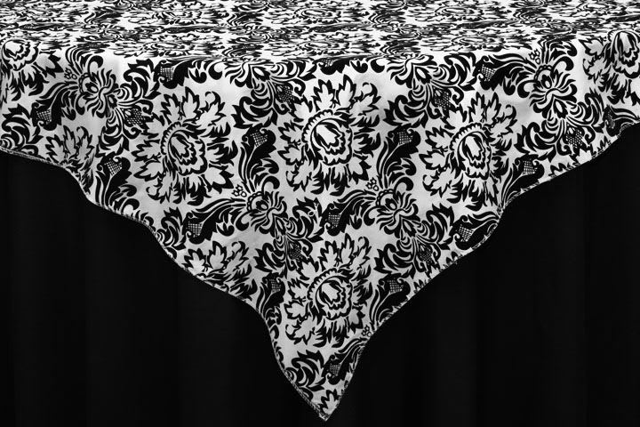 Make a dramatic statement at your special event with our stunning Flocking Table Overlays! Each overlay features a dramatic velvet Damask design over a high quality taffeta, perfect for your wedding, birthday celebration, or any other special occasion. Best of all, taffeta is versatile and easily paired with other fabrics to tie together the look for your event. Let our Flocking Table Overlays become the center of the decor of your special event!
