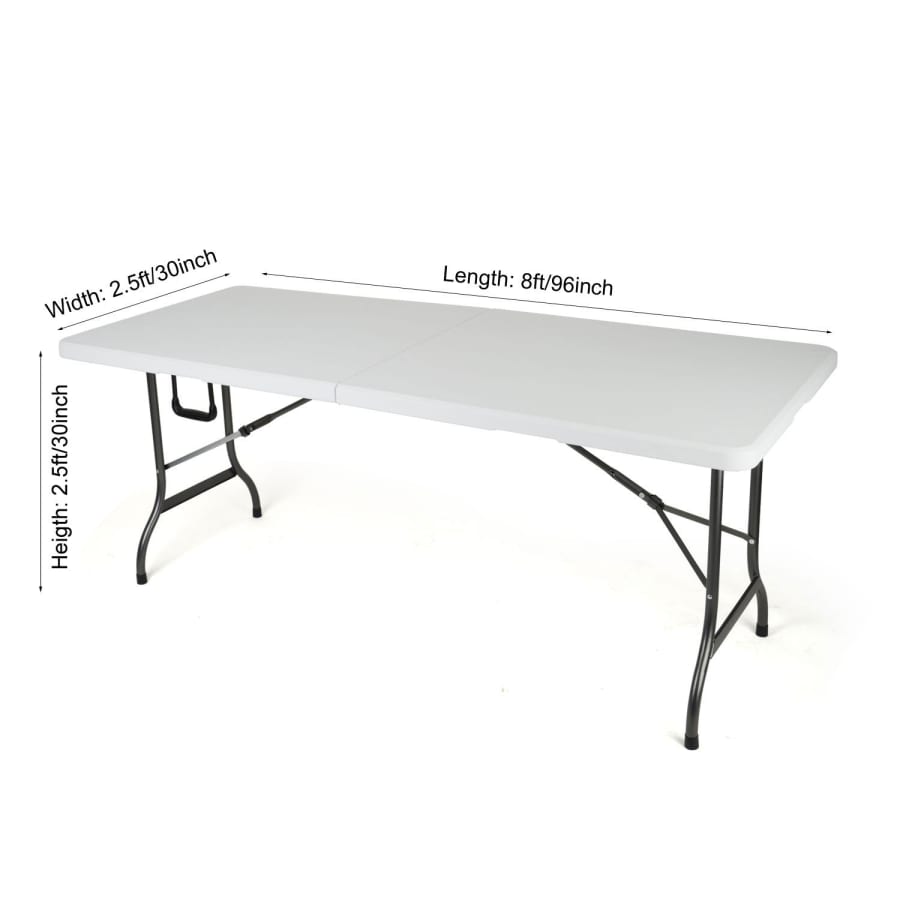 This 8' ft fitted rectangular tablecloth is for a folding table or banquet table that measures 96" length x 30" width x 30" height. Our fitted rectangular tablecloth is ideal for use at various events such as weddings, birthdays, showers, dinner rehearsals, and simple family functions. Our tablecloths are made of woven polyester and are designed to be durable, wrinkle and stain resistant. The 8' tablecloth is one of the most popular sizes of table linen. This size can be used on a standard 8 ft. (30"x96") banquet table.